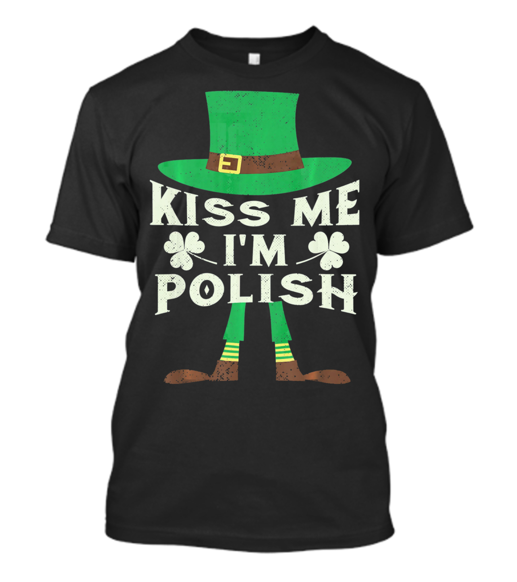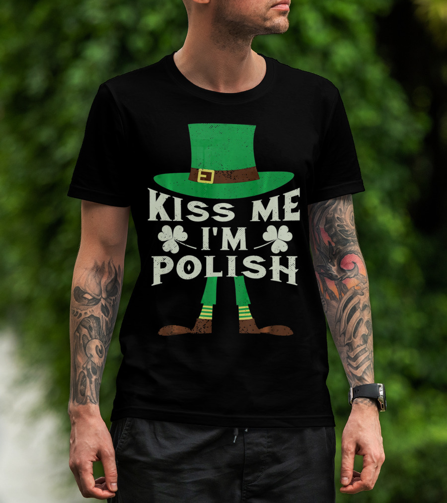 Kiss Me I'm Polish Leprechaun Hat And Shamrocks T-Shirt