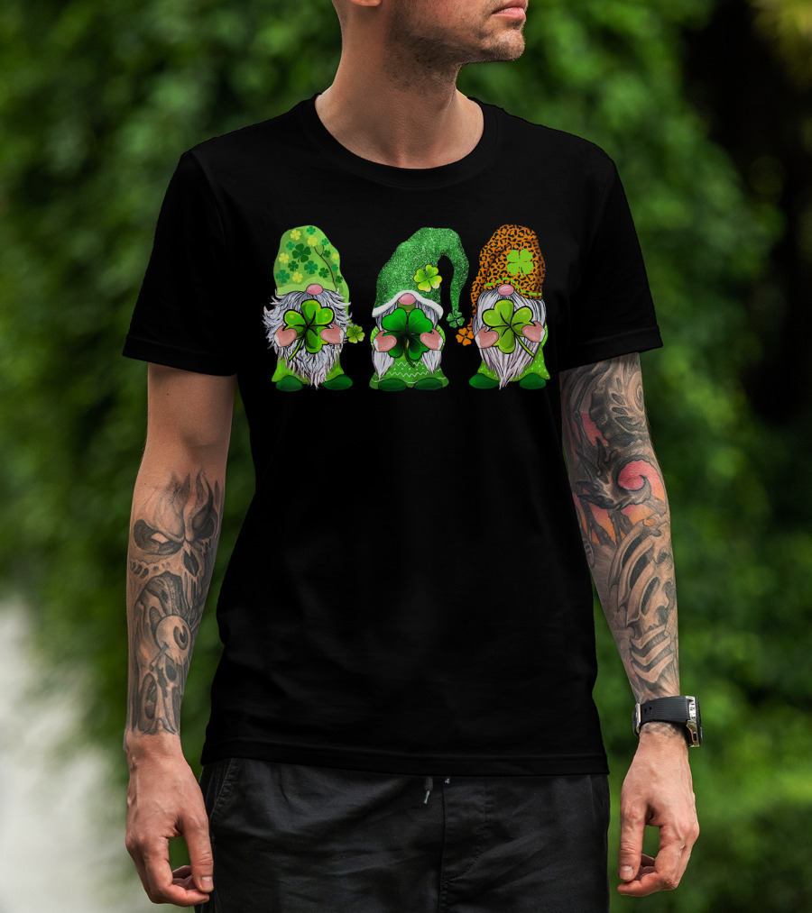 Leprechaun Irish Gnomes With Shamrocks And Clover Hats T-Shirt