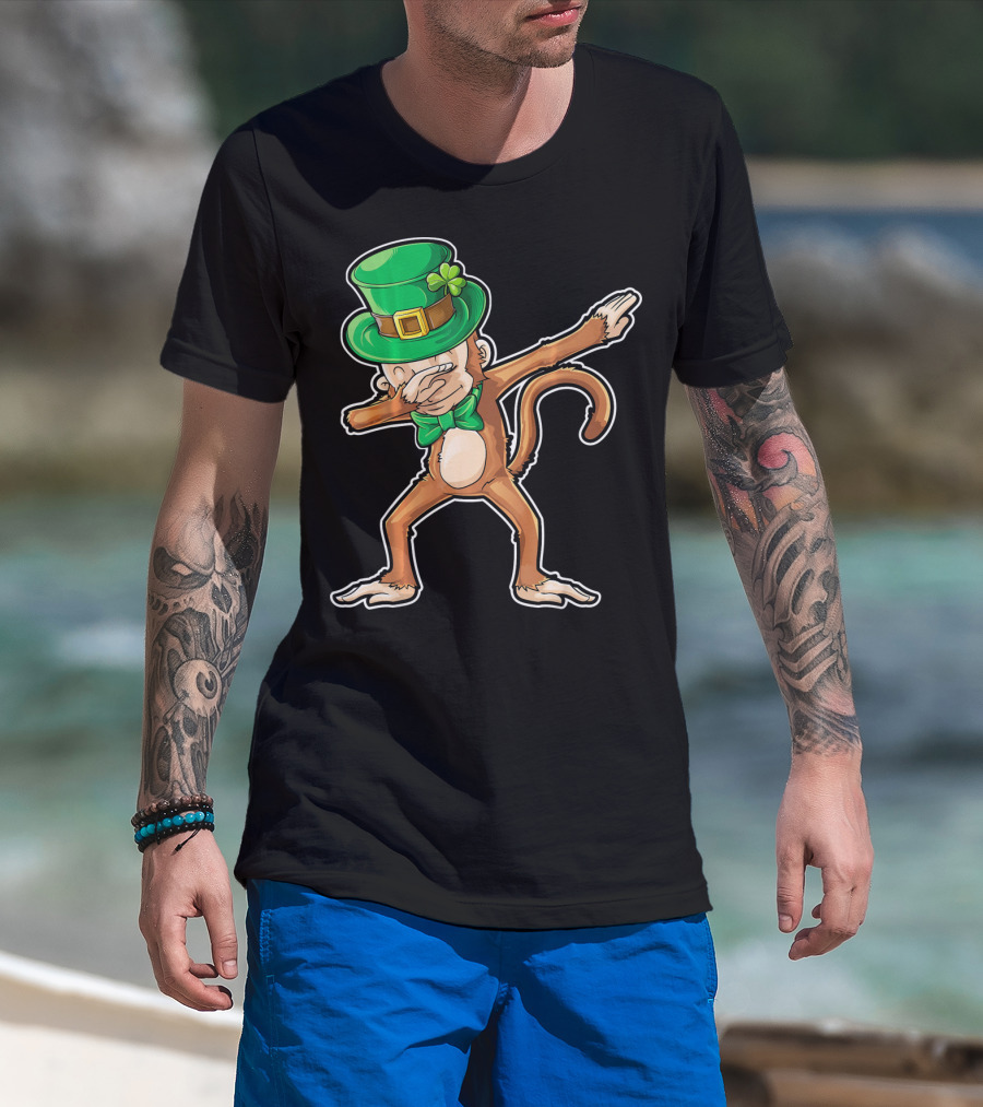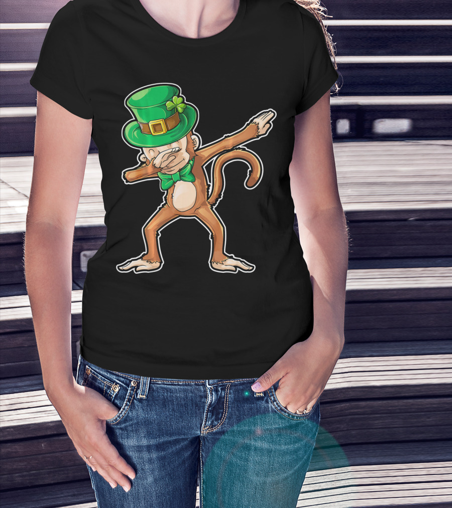 Dabbing Monkey St. Patrick's Day Leprechaun Hat Green Bow Tie T-Shirt