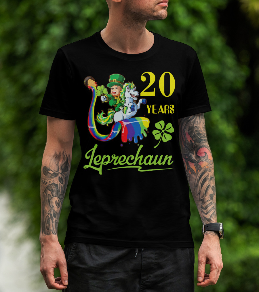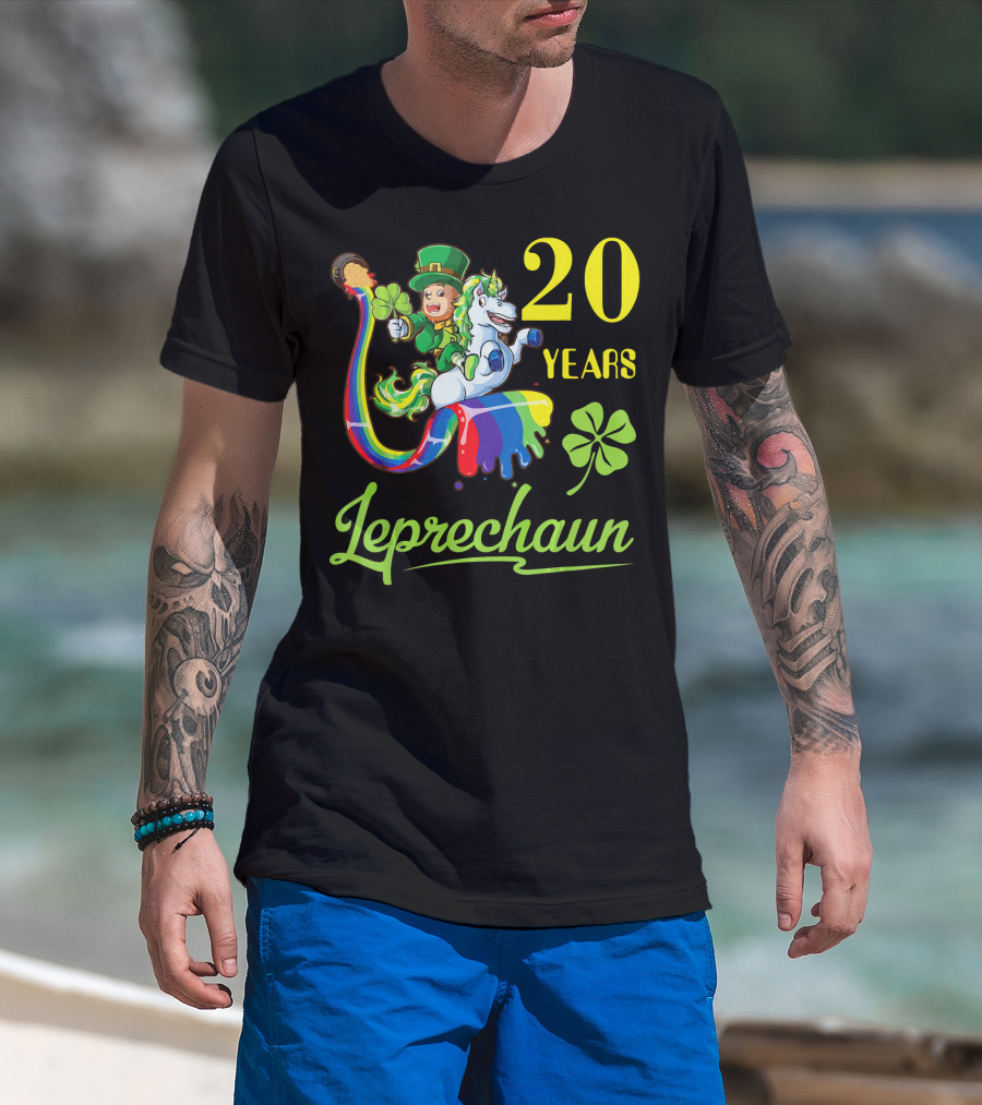 20 Years Leprechaun Riding Unicorn Rainbow Shamrock T-Shirt