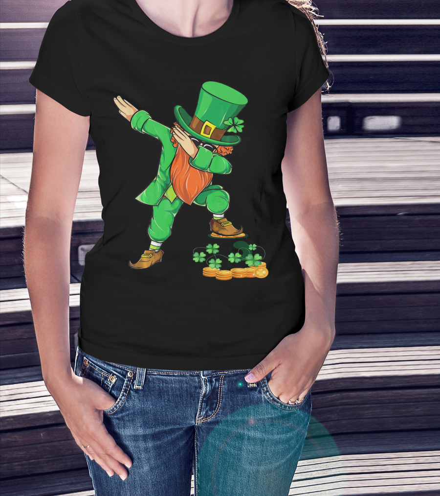 Leprechaun Dabbing With Shamrocks And Gold Coins T-Shirt