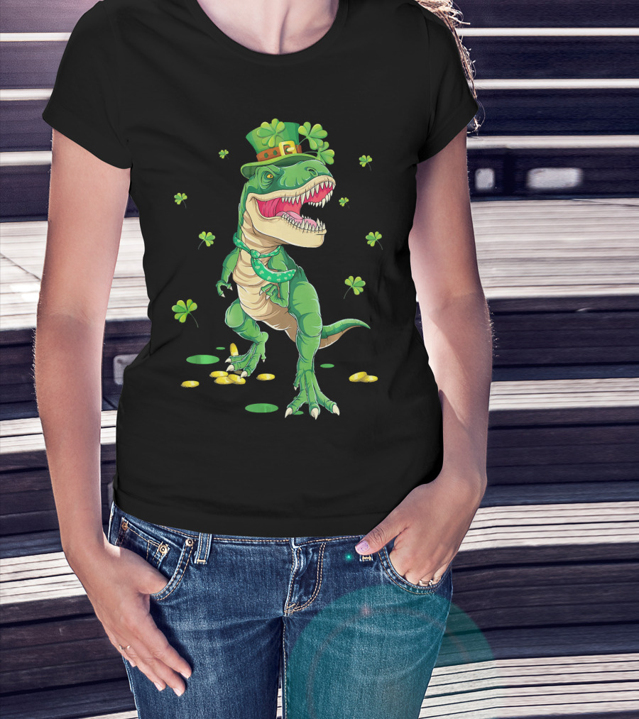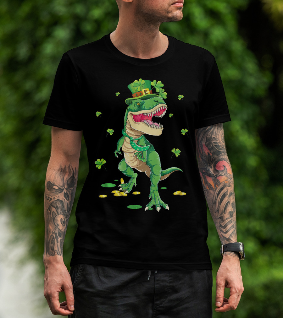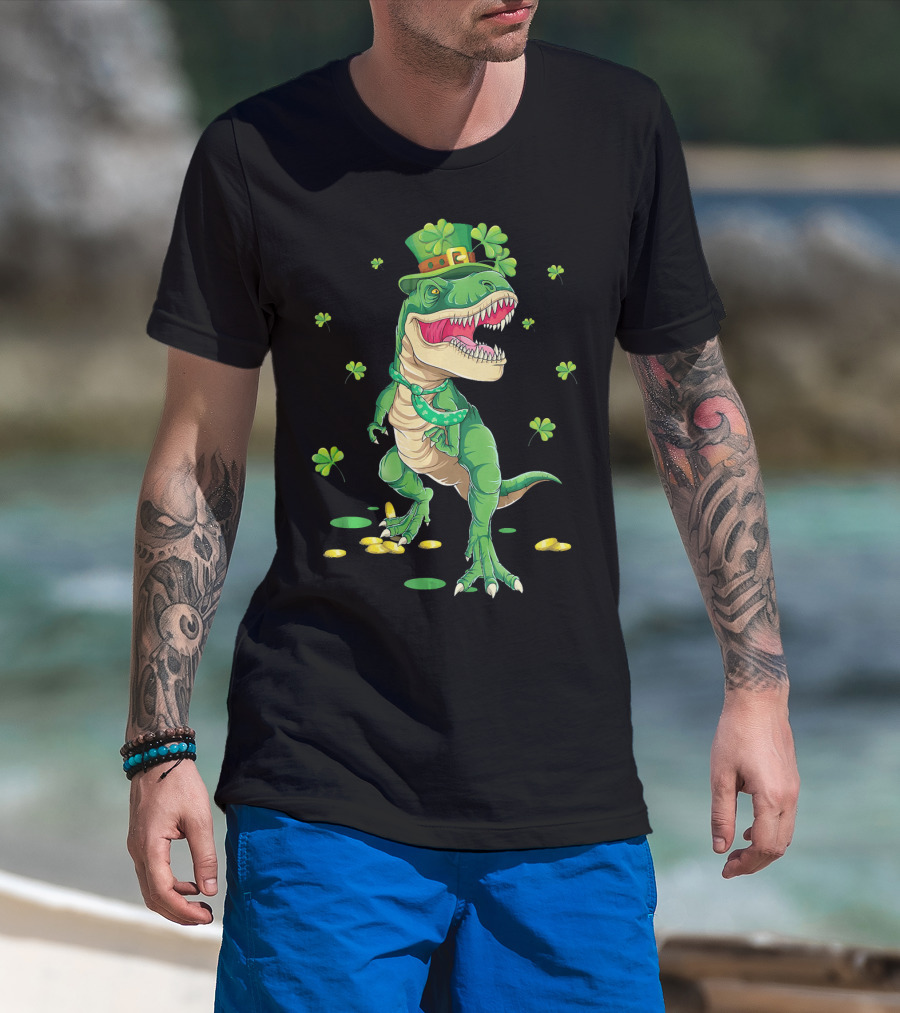 Happy St. Patrick’s Day Dinosaur Leprechaun Shamrocks Gold T-Shirt