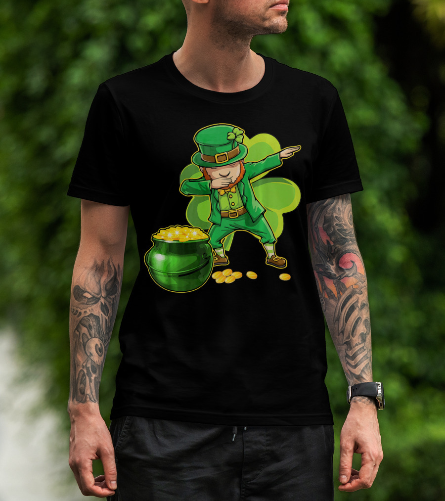 Dabbing Leprechaun Pot Of Gold Shamrock Dance T-Shirt