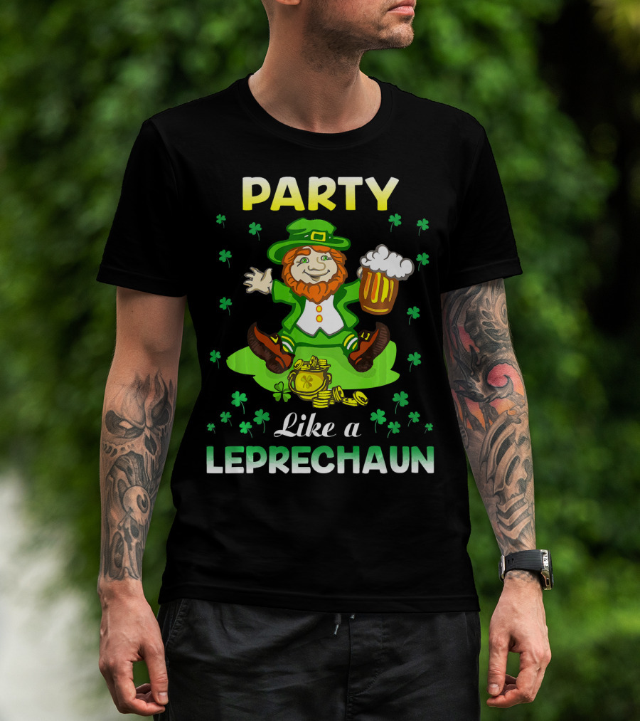 The Party Like a Leprechaun Irish Green T-shirt is designed for everyday wear and a consistent fit. Fabric is pre-shrunk ring-spun cotton with durable stitching. See the size chart below for exact measurements.