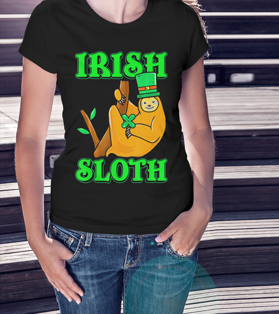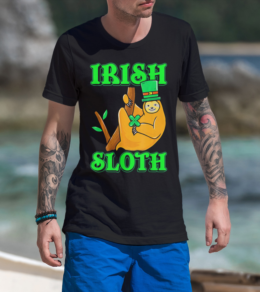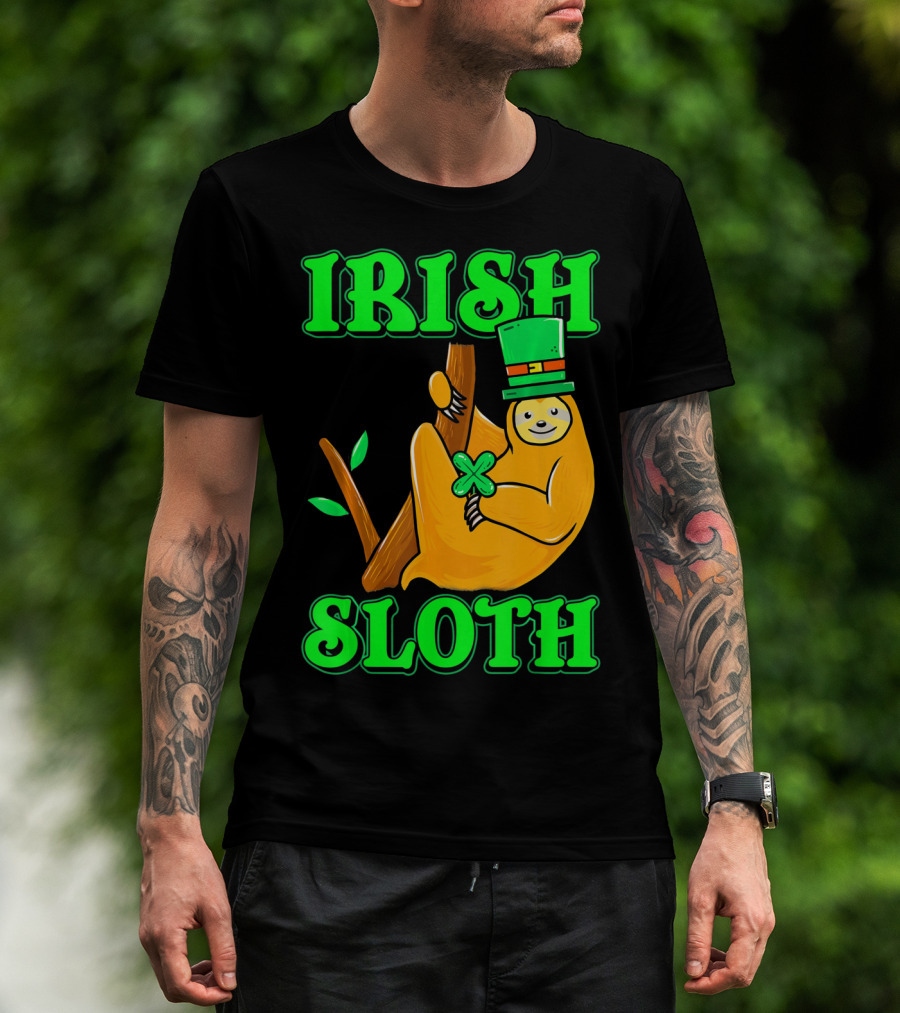 IRISH SLOTH Lucky Sloth With Shamrock And Green Hat T-Shirt