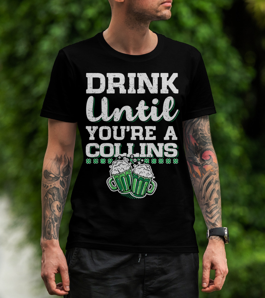 Drink Until You're A Collins St Patrick's Day Beer Mugs Shamrocks T-Shirt