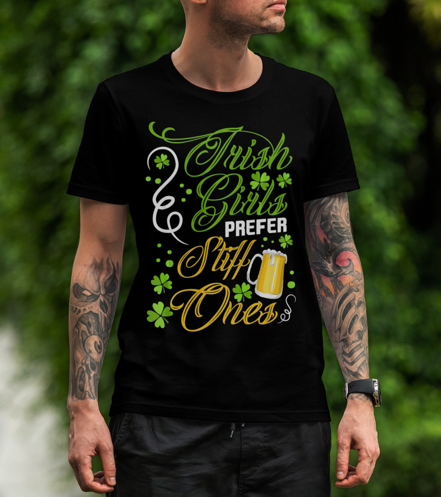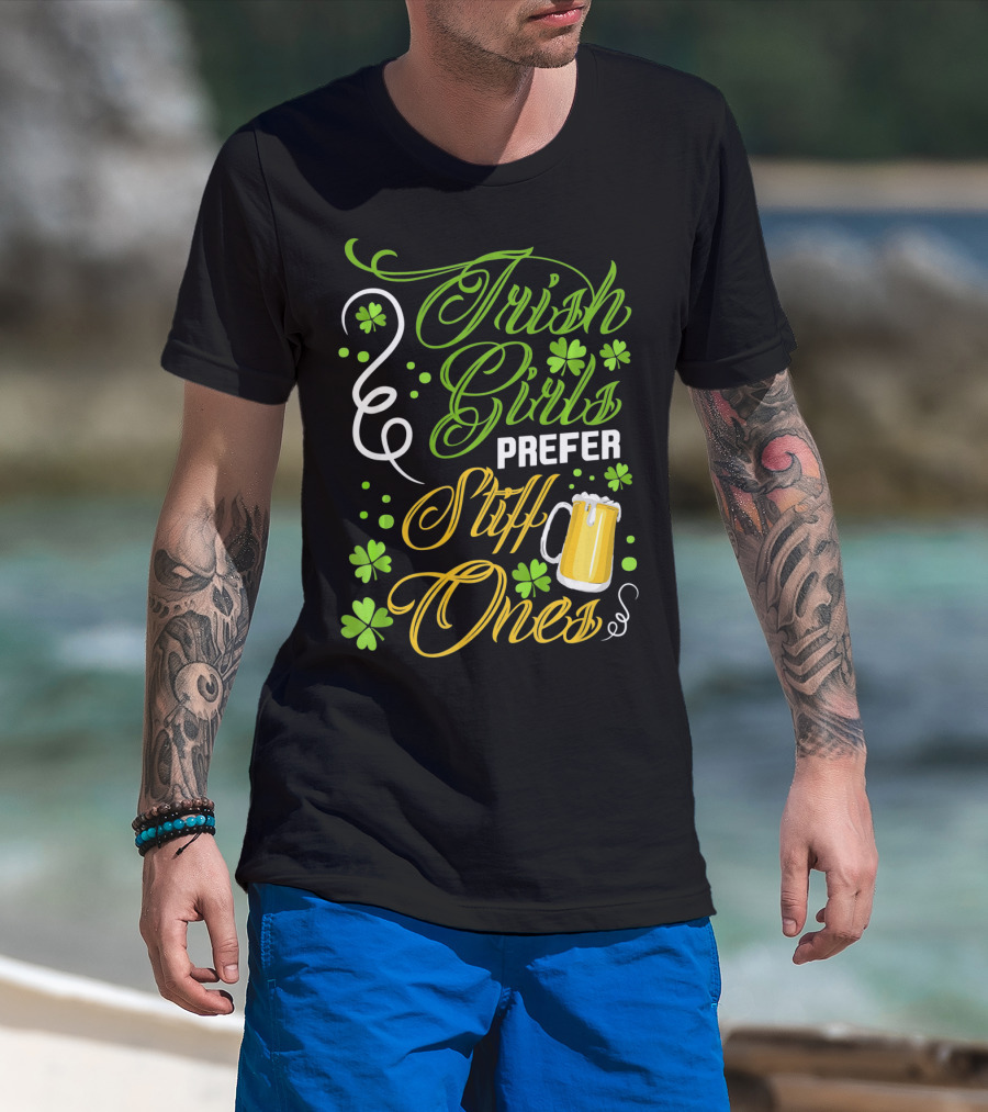 Irish Girls Prefer Stiff Ones Beer Mug Shamrocks T-Shirt