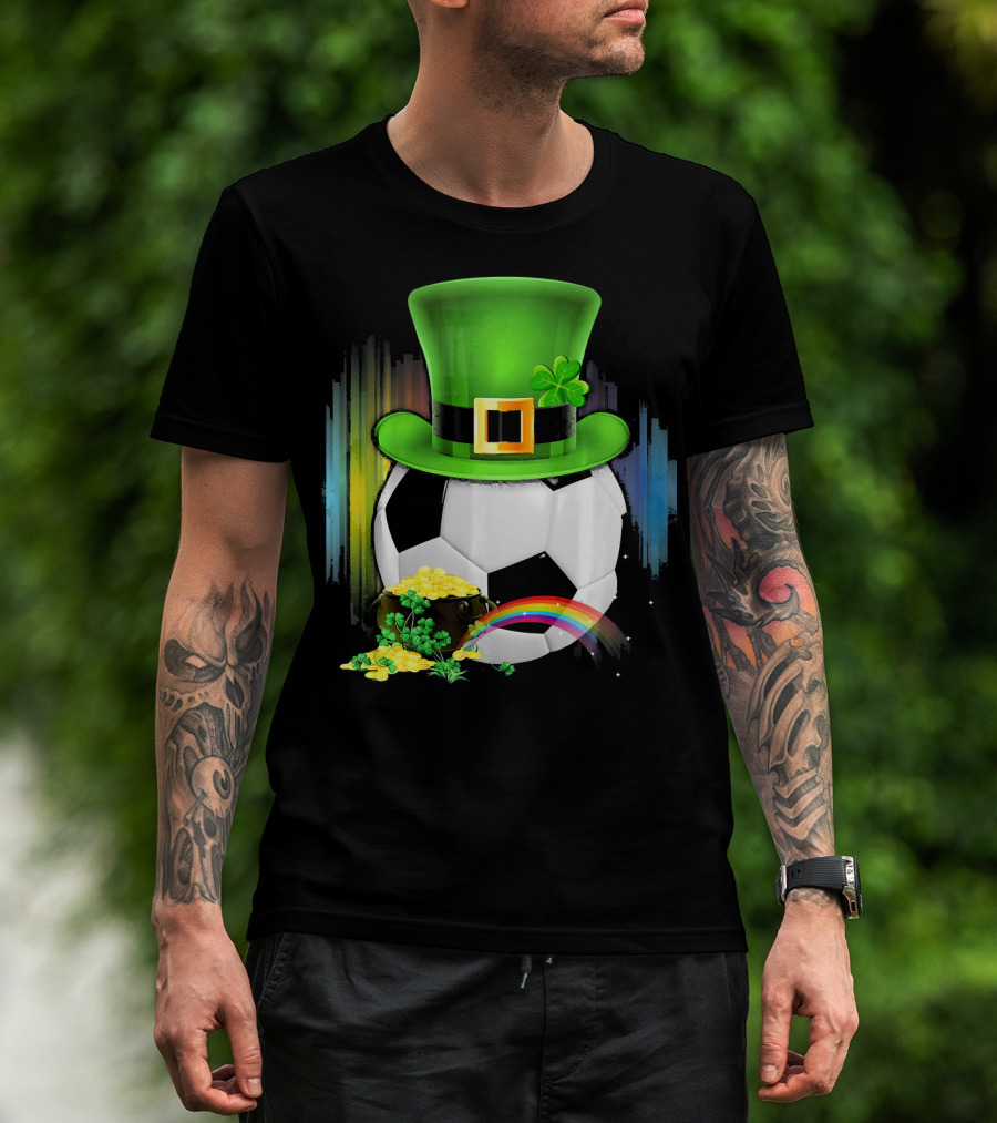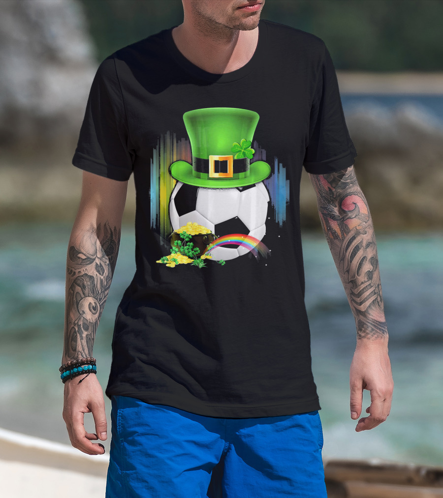 Soccer Ball Leprechaun Hat Pot Of Gold Rainbow Saint Patricks T-Shirt