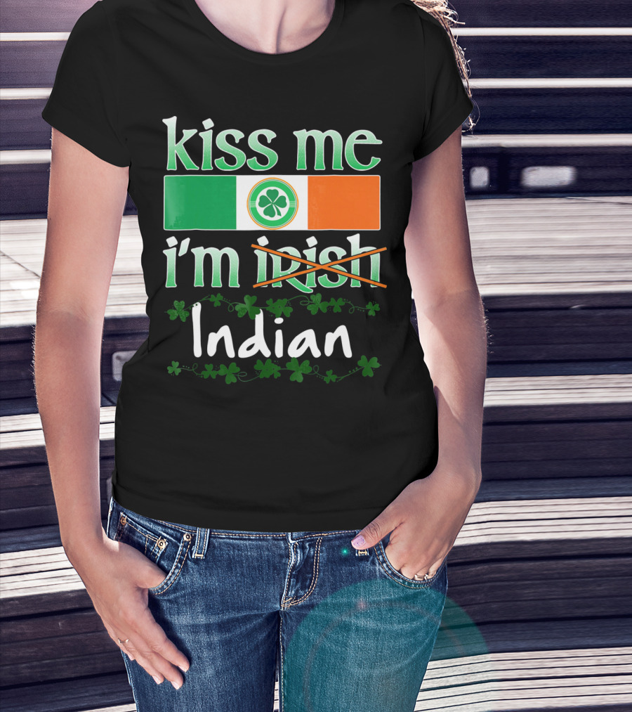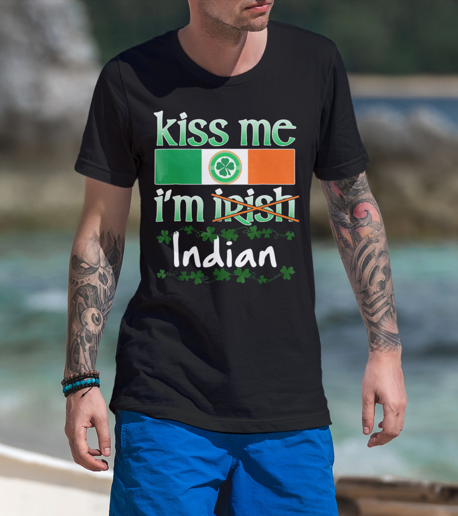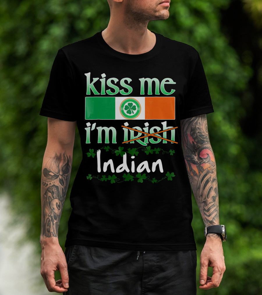 Kiss Me I'm Indian Pride Flag Shamrocks T-Shirt