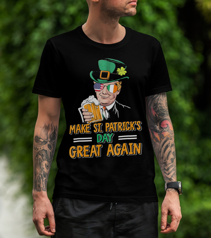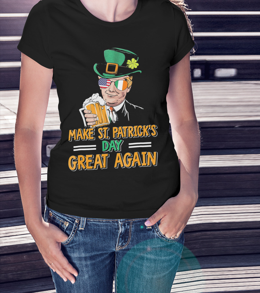 Make St Patrick's Day Great Again American Irish Flag Shades Leprechaun Hat Beer T-Shirt