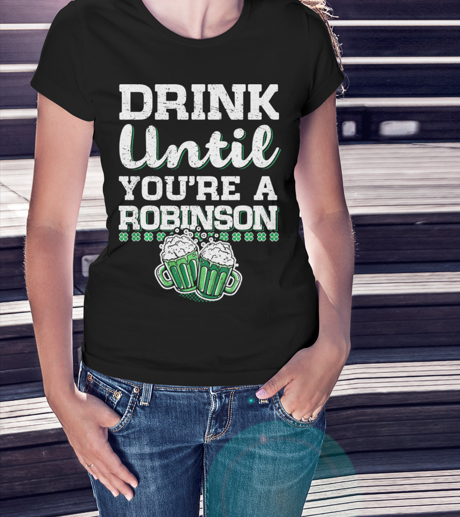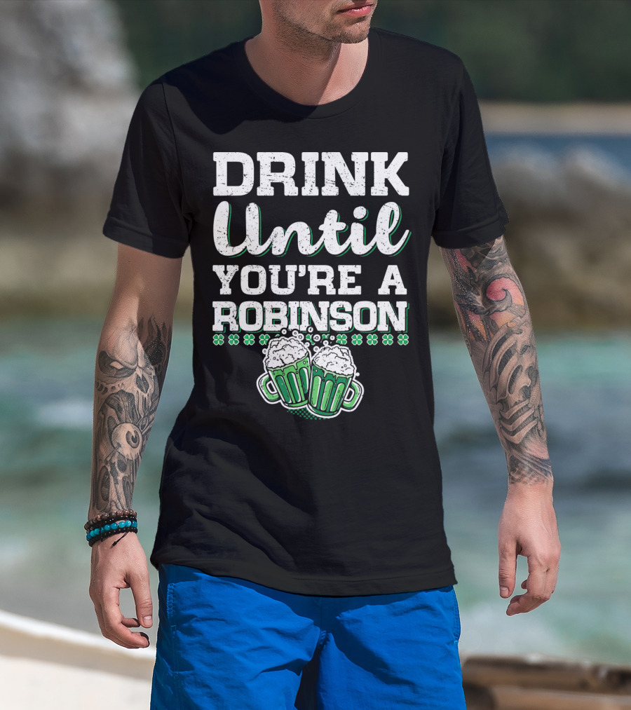 Drink Until You're A Robinson St. Patrick's With Shamrocks And Beer Mugs T-Shirt