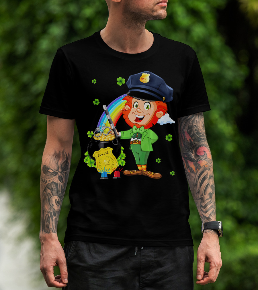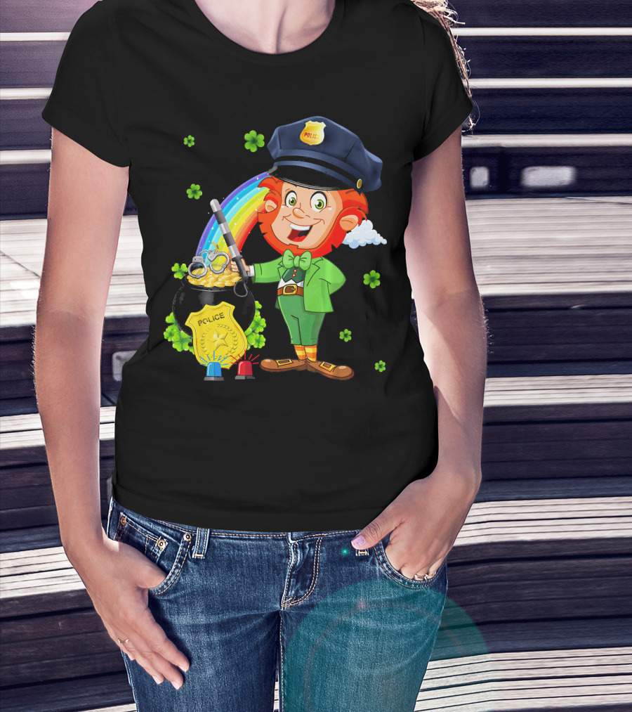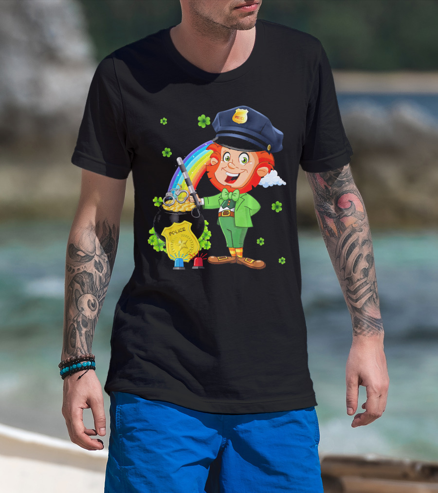 Police Leprechaun Pot Of Gold Rainbow Clover St. Patricks T-Shirt