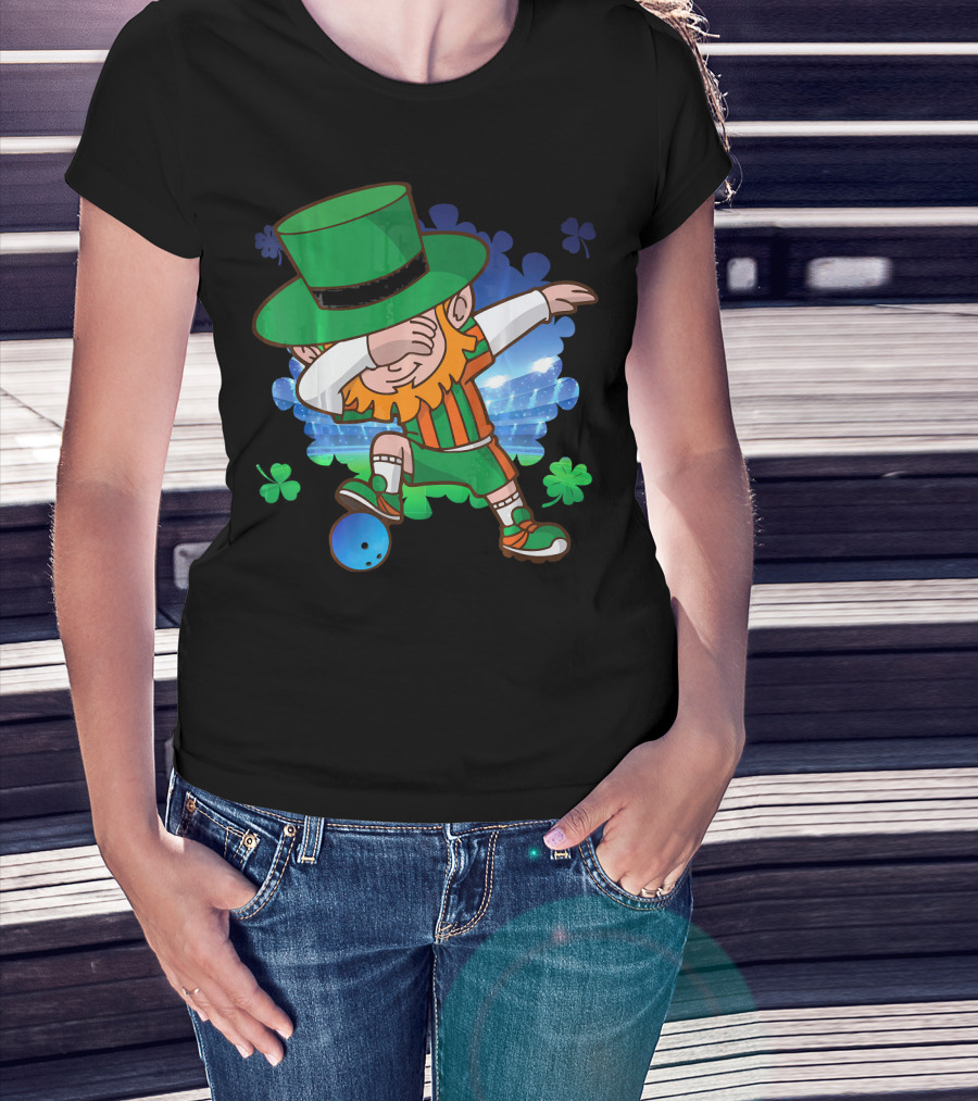 Leprechaun Dabbing Bowling With Clover Accents T-Shirt