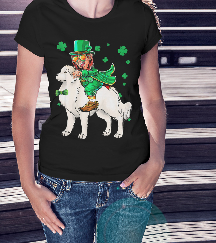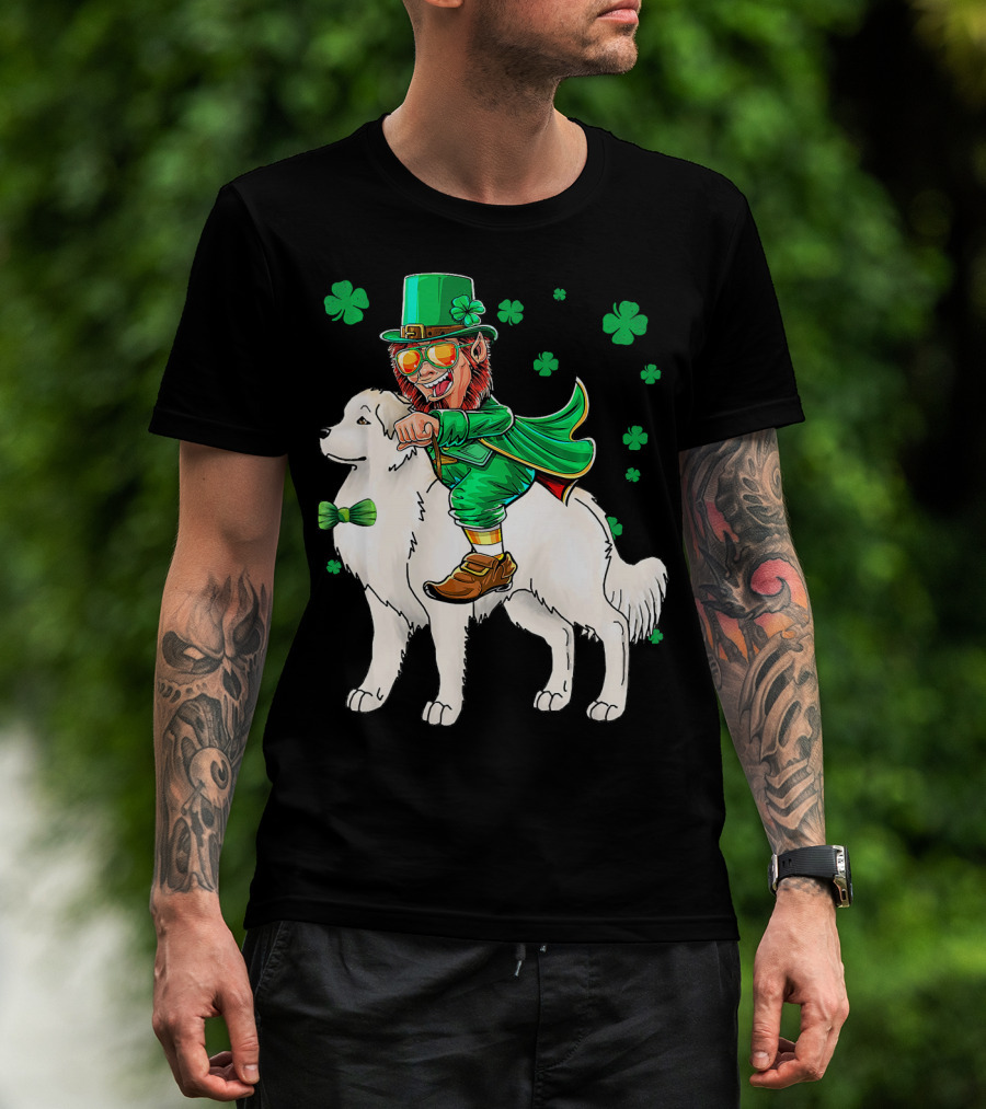 Great Pyrenees Leprechaun Riding Shamrock T-Shirt