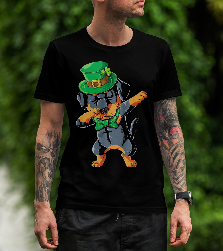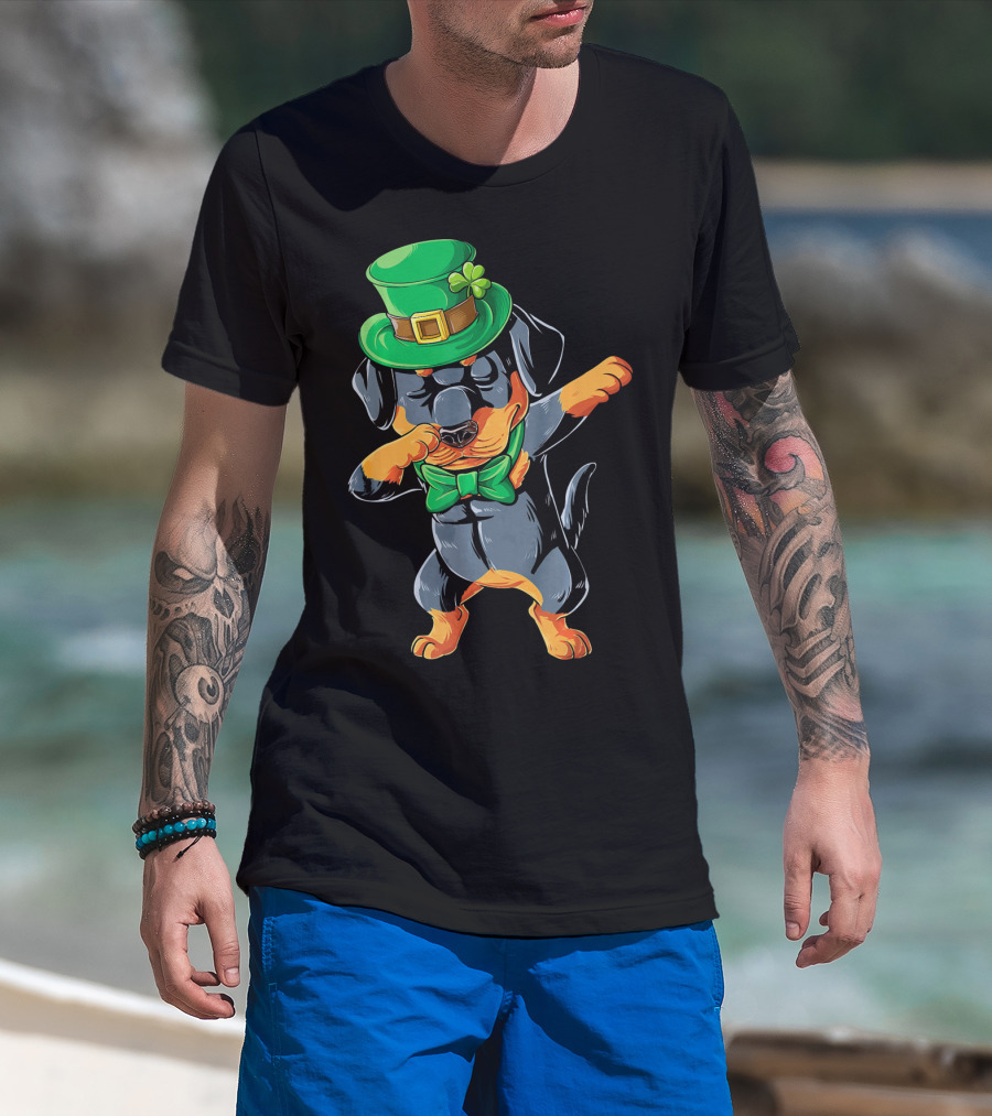 Dabbing Rottweiler St. Patrick's Day Hat And Bow Tie T-Shirt