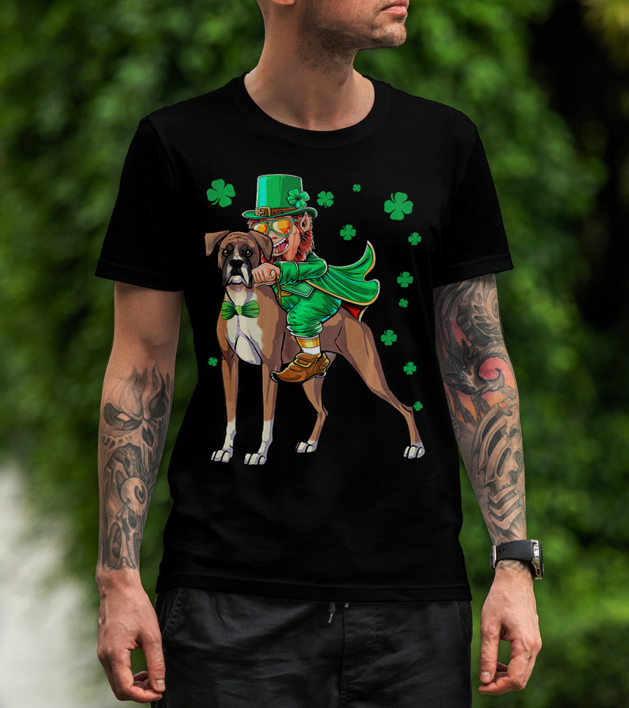 Leprechaun Riding Boxer Dog With Shamrocks St. Patrick's Day T-Shirt