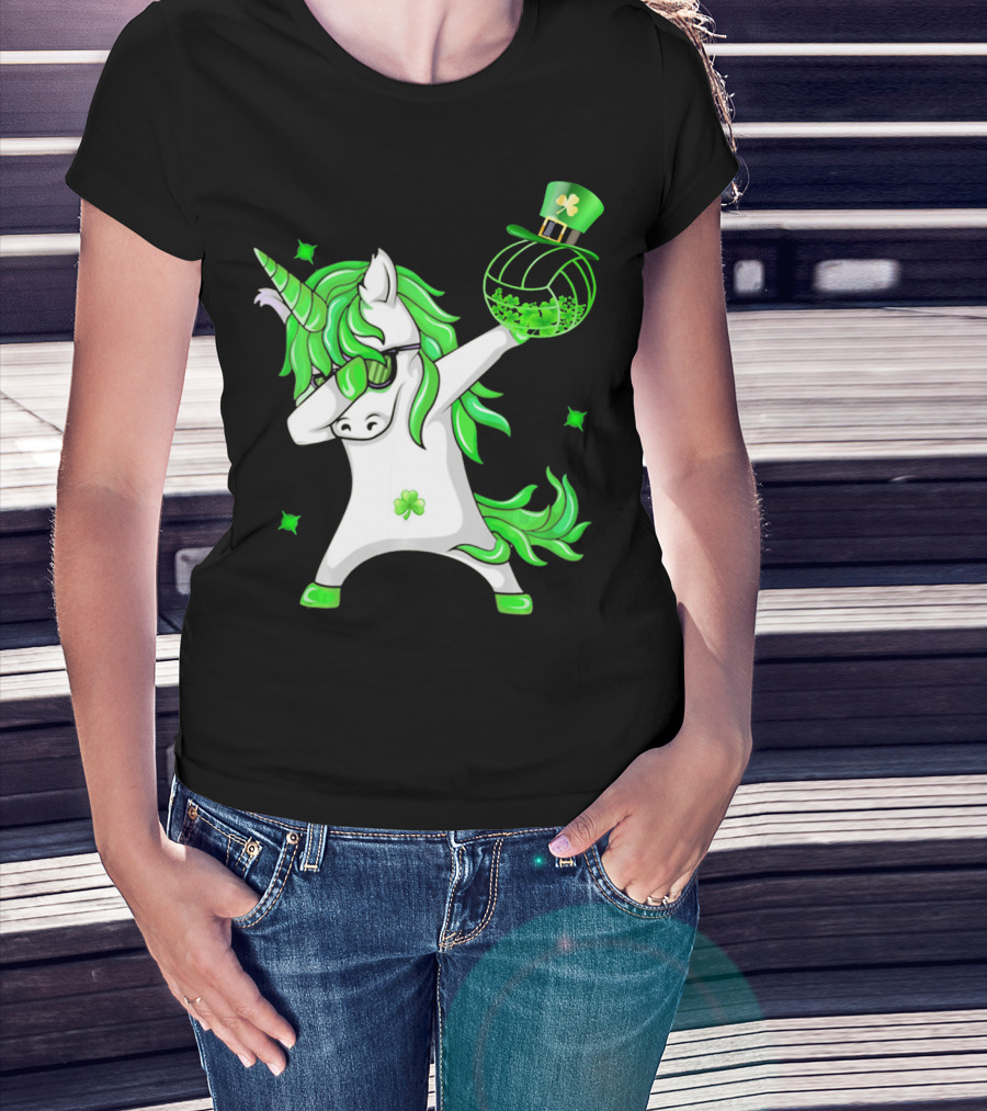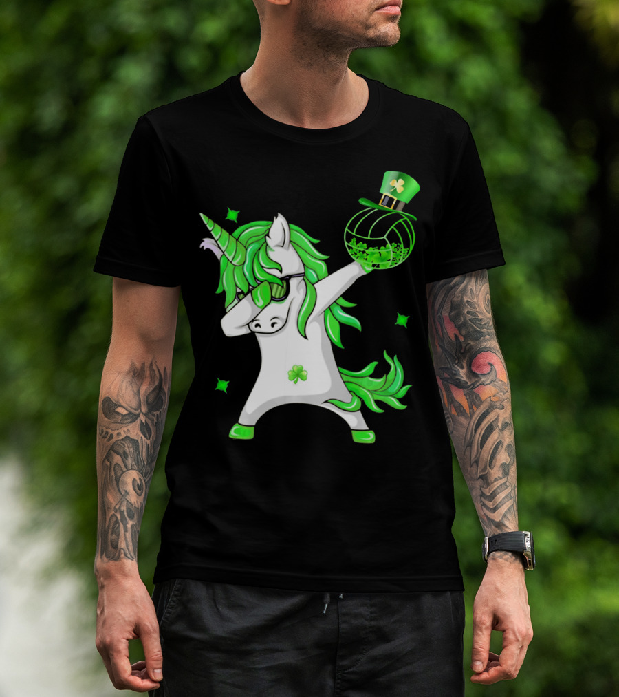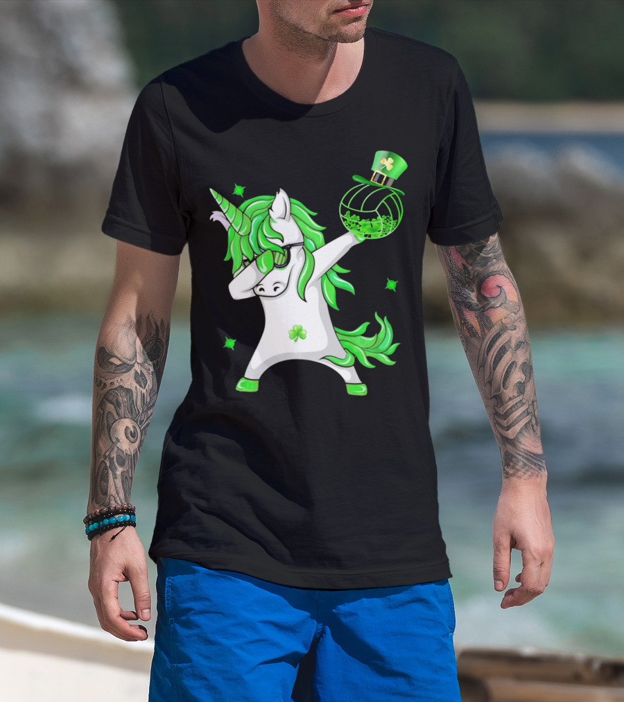 Happy St Patricks Day Dabbing Unicorn With Shamrock Hat And Green Hair T-Shirt