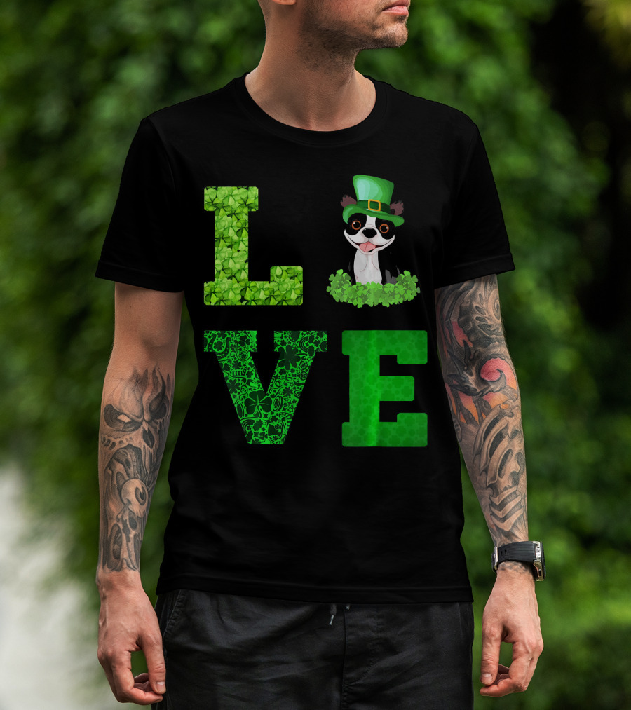 Love Boston Terrier St Patricks Day Clover Hat T-Shirt