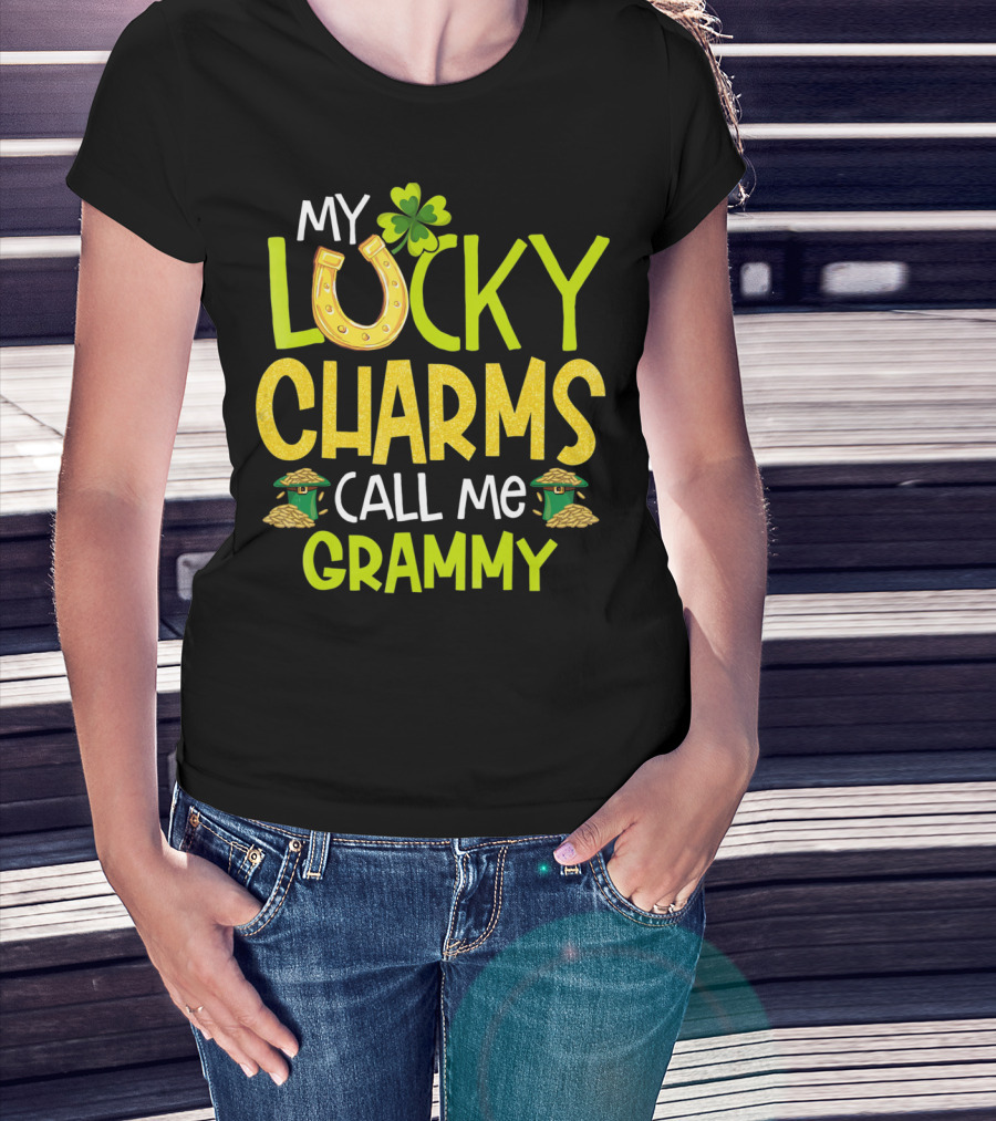 My Lucky Charms Call Me Grammy With Horseshoe Clover Gold Pots T-Shirt