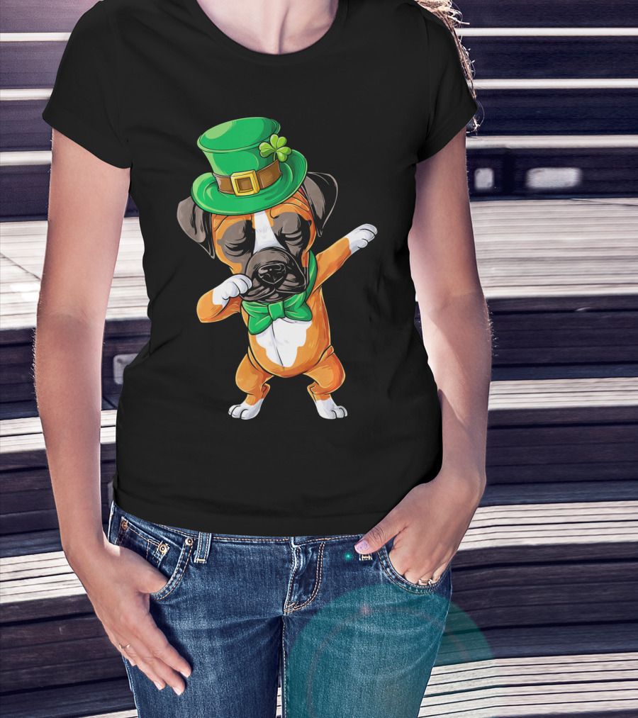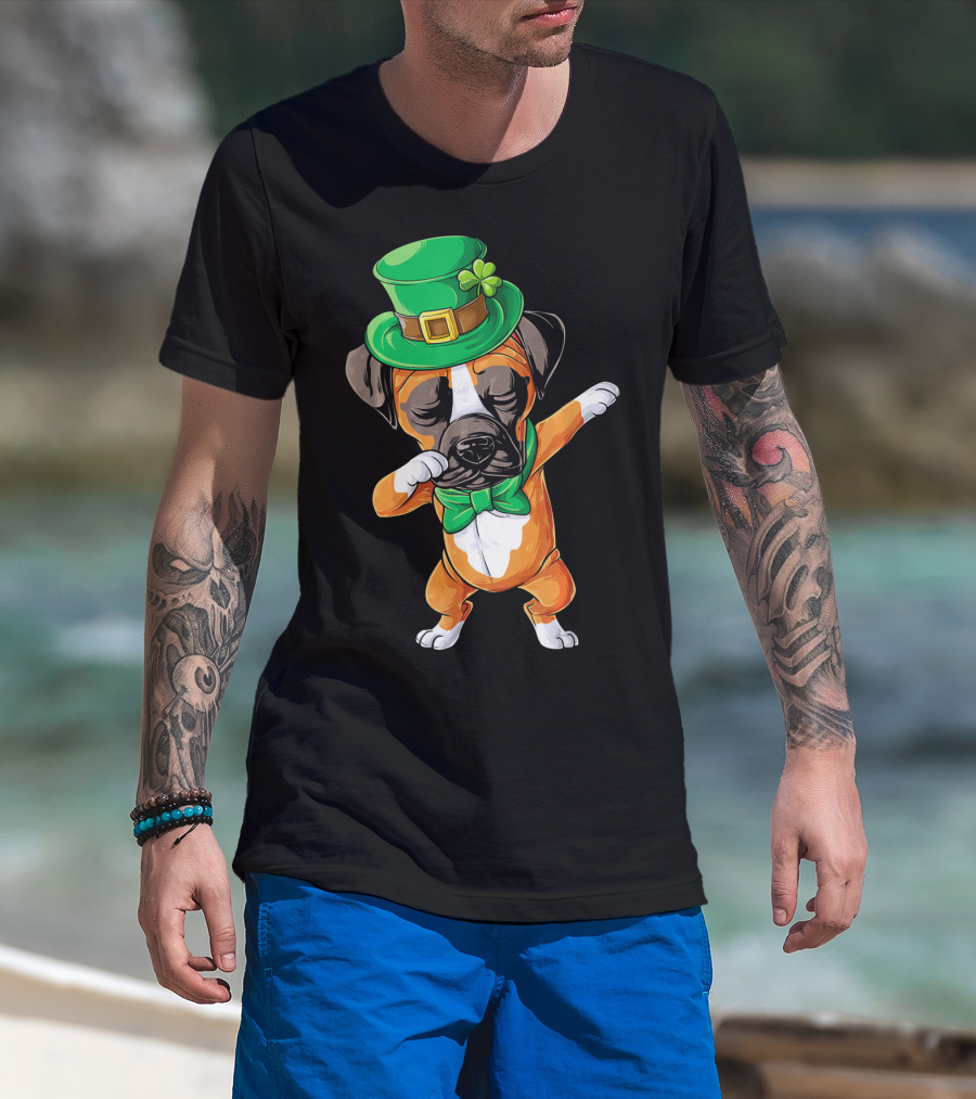Dabbing Boxer Dog St Patricks Day Hat Bowtie T-Shirt
