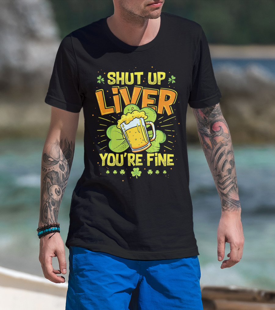 Shut Up Liver You're Fine Saint Patrick's Day Ireland Beer Shamrock T-Shirt