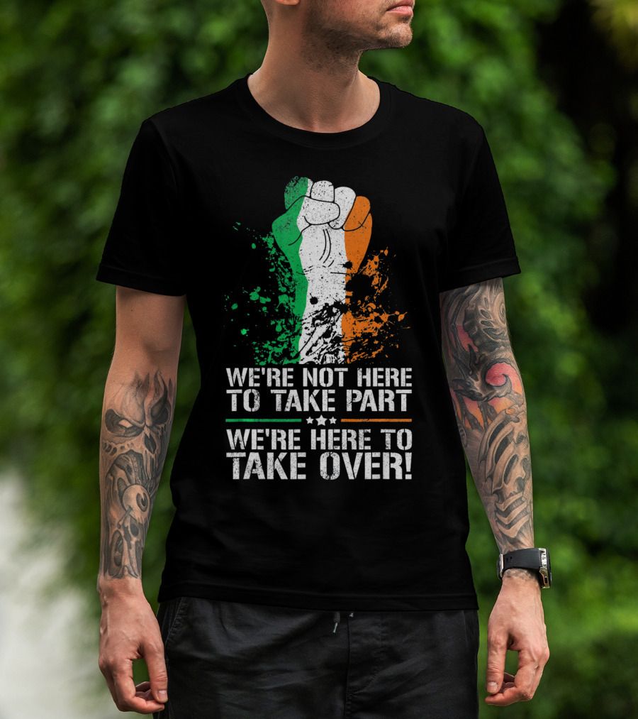 We're Not Here To Take Part We're Here To Take Over Irish Pride Fist Splatter T-Shirt