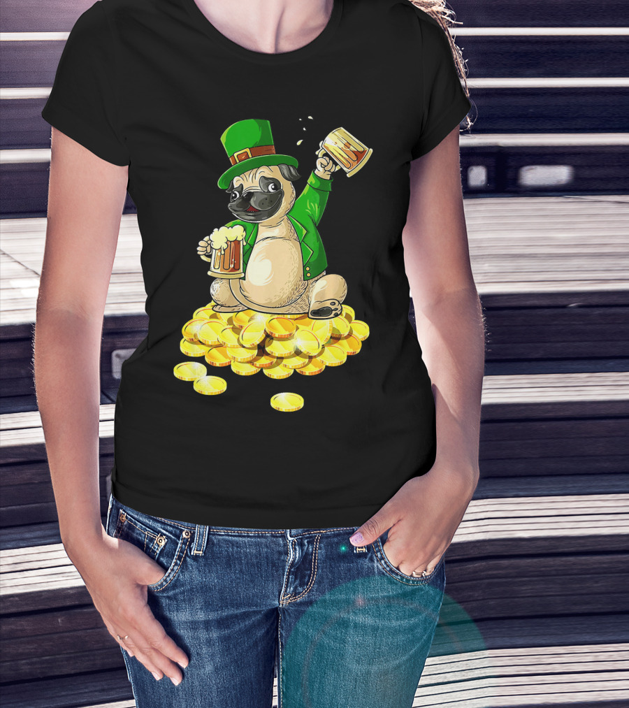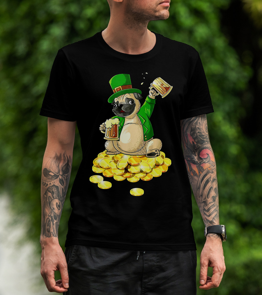 Irish Pug St. Patrick's Day Beer Cheers On Gold Coins T-Shirt