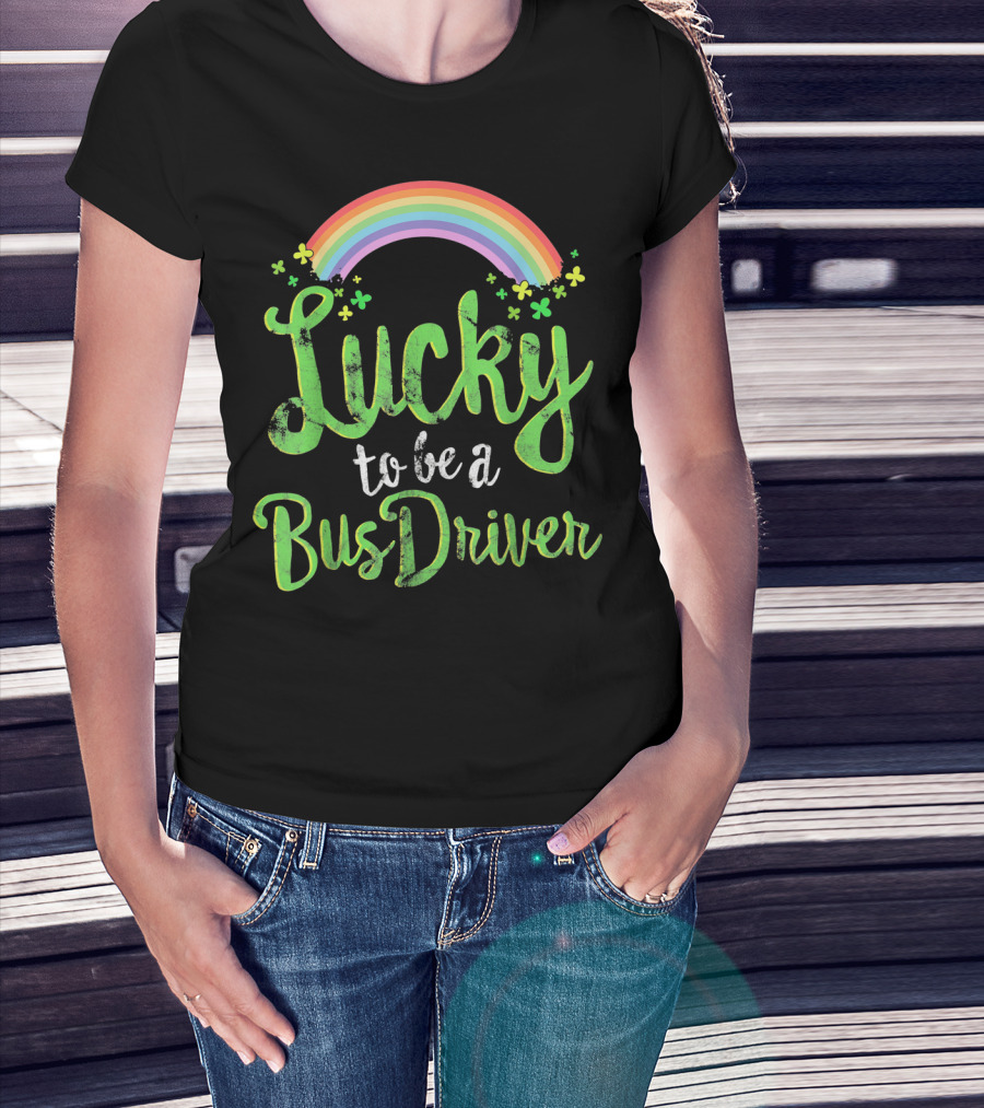Lucky To Be A Bus Driver Rainbow Clover T-Shirt