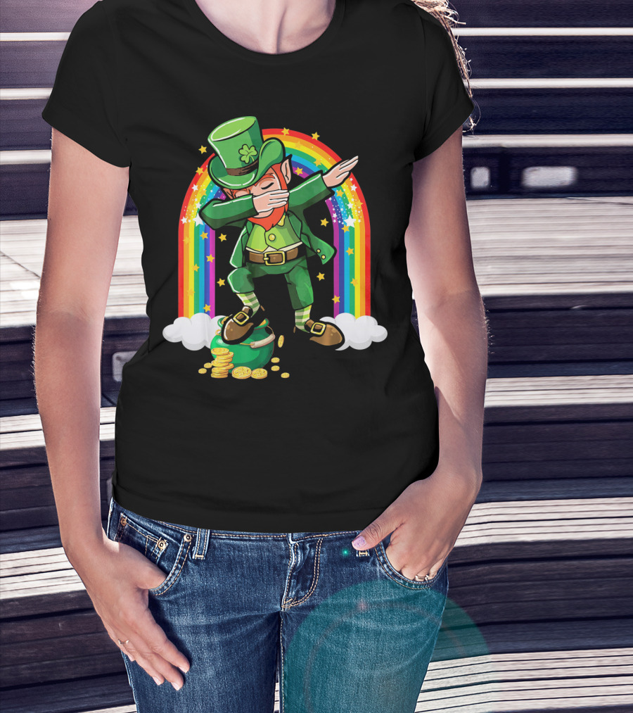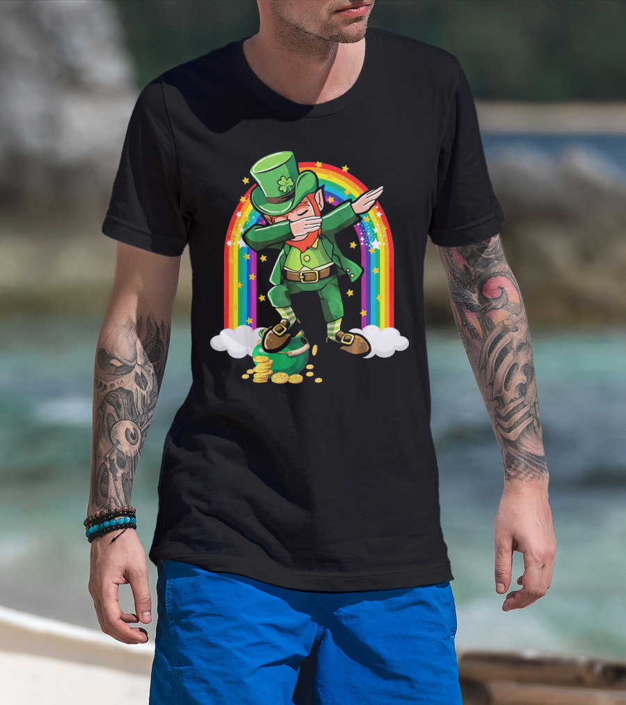 St Patricks Day Leprechaun Dabbing With Rainbow And Gold Coins T-Shirt