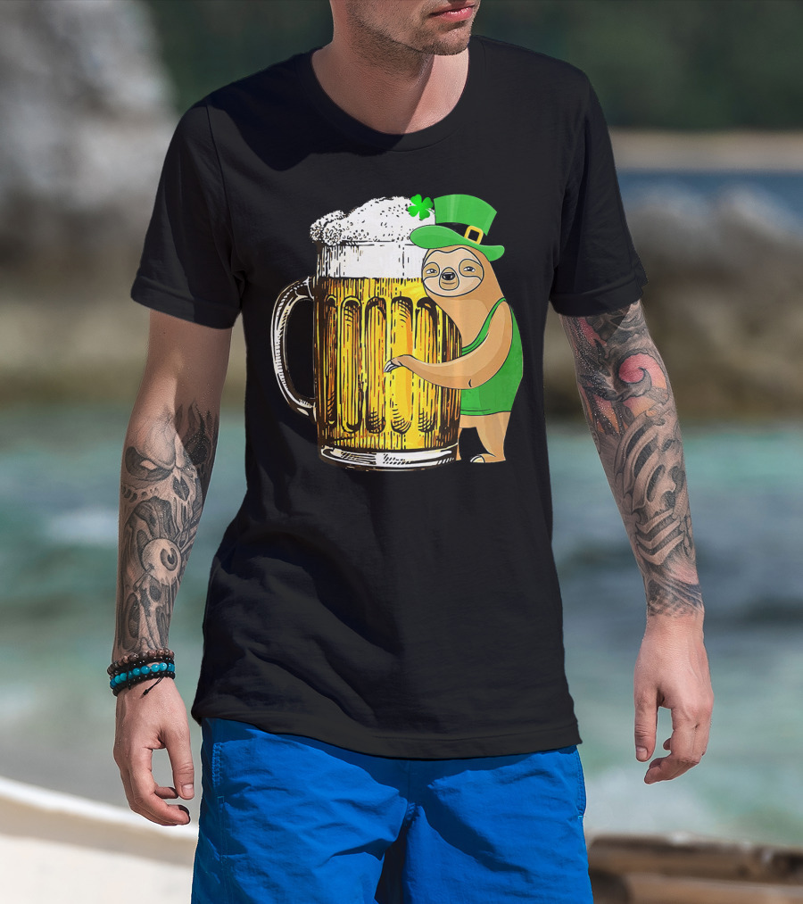 St Patricks Sloth Leprechaun With Beer Mug T-Shirt