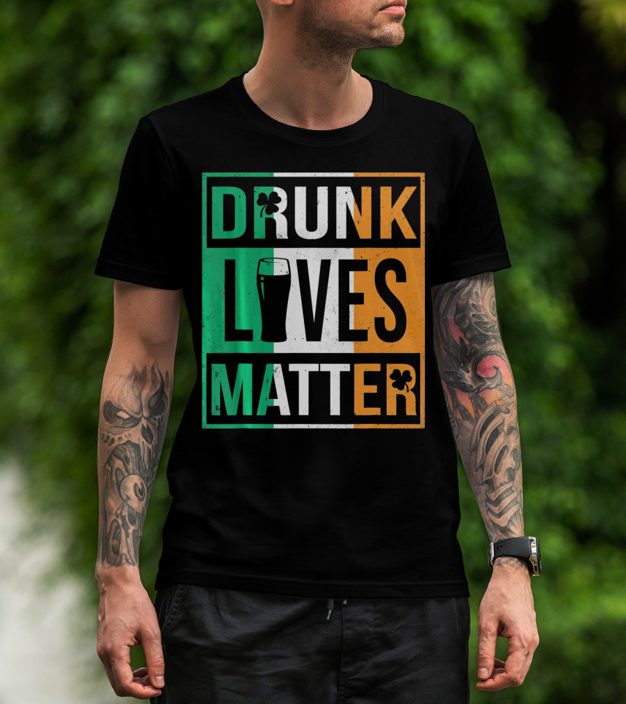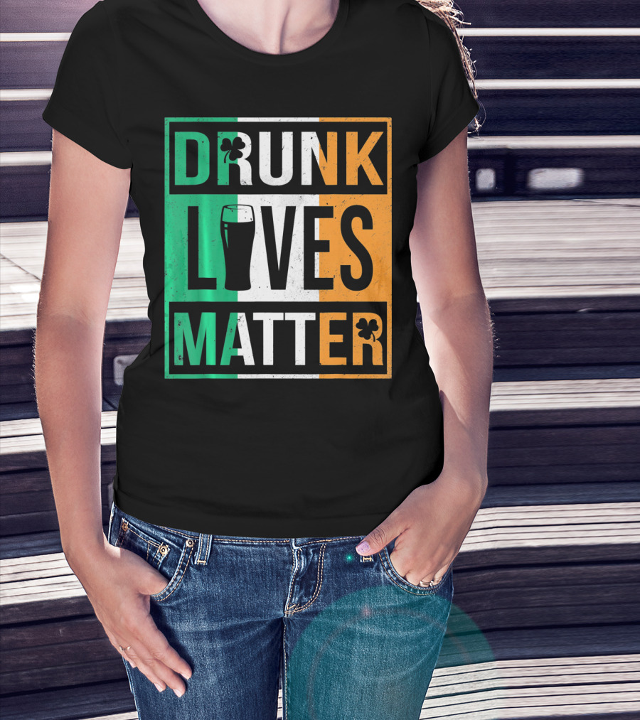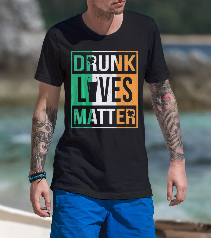 Drunk Lives Matter St Patricks Irish Flag Colors Pint Shamrocks T-Shirt