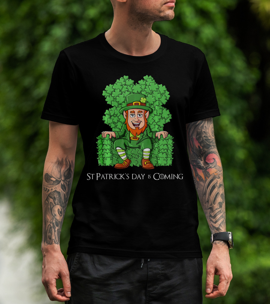 St Patrick's Day Is Coming Leprechaun On Clover Throne T-Shirt