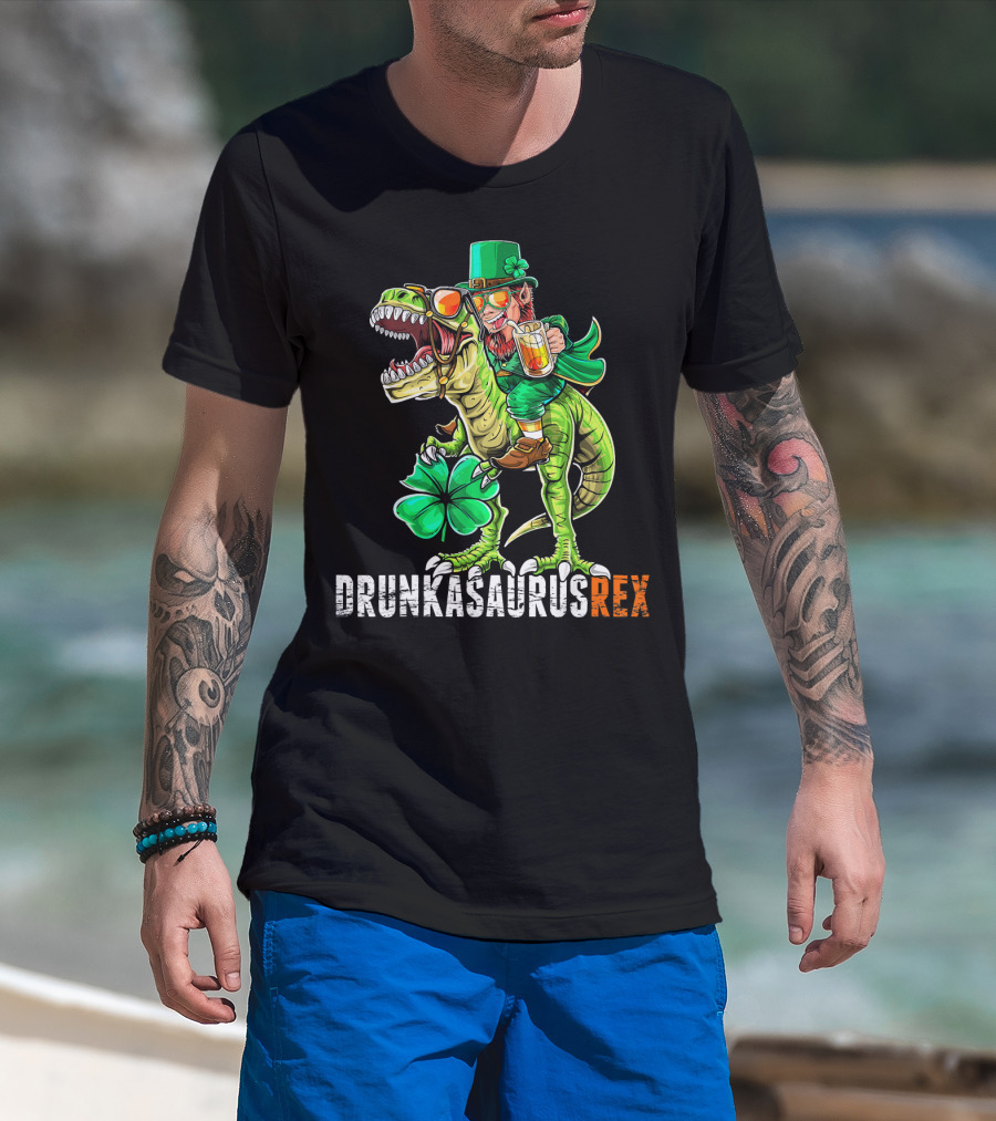 Drunkasaurus Rex St. Patrick's Day Leprechaun Dinosaur Fun T-Shirt