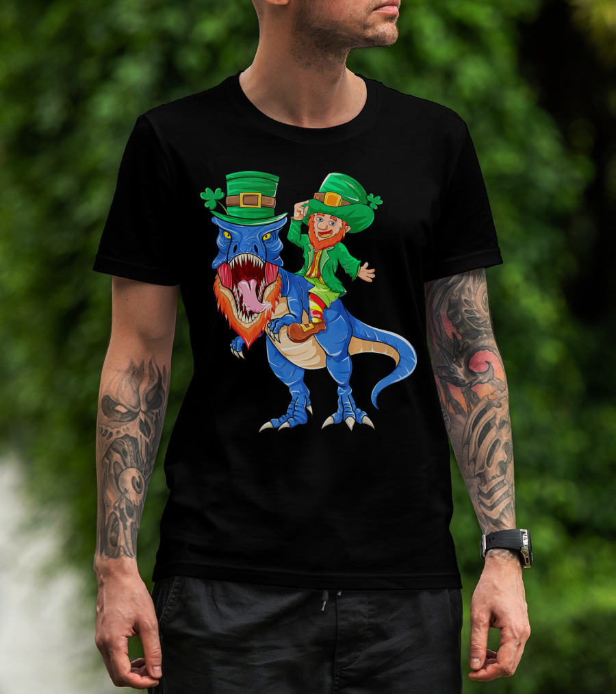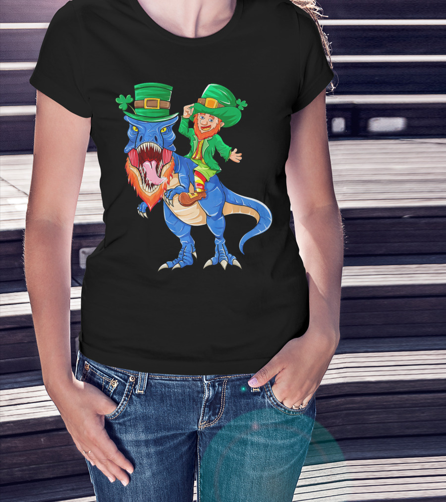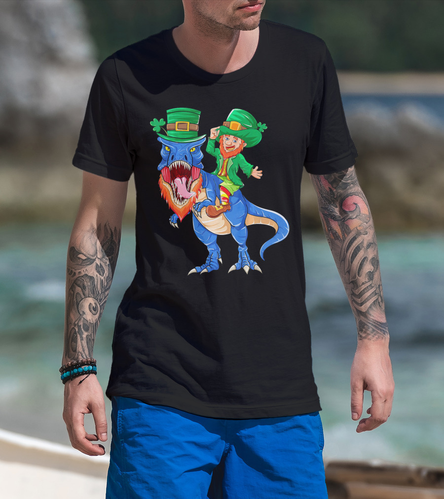 T Rex Dinosaur Ridden By Leprechaun St Patricks Day T-Shirt