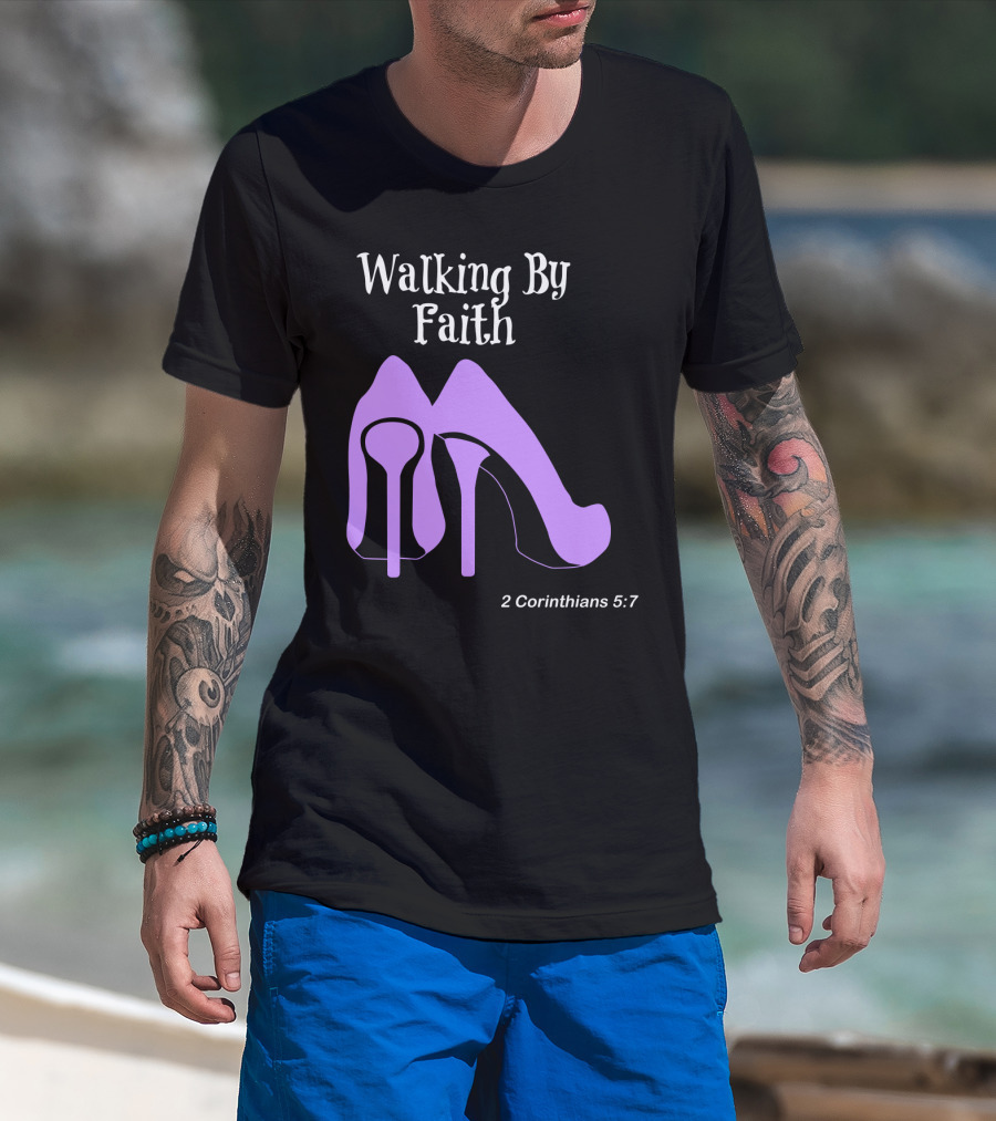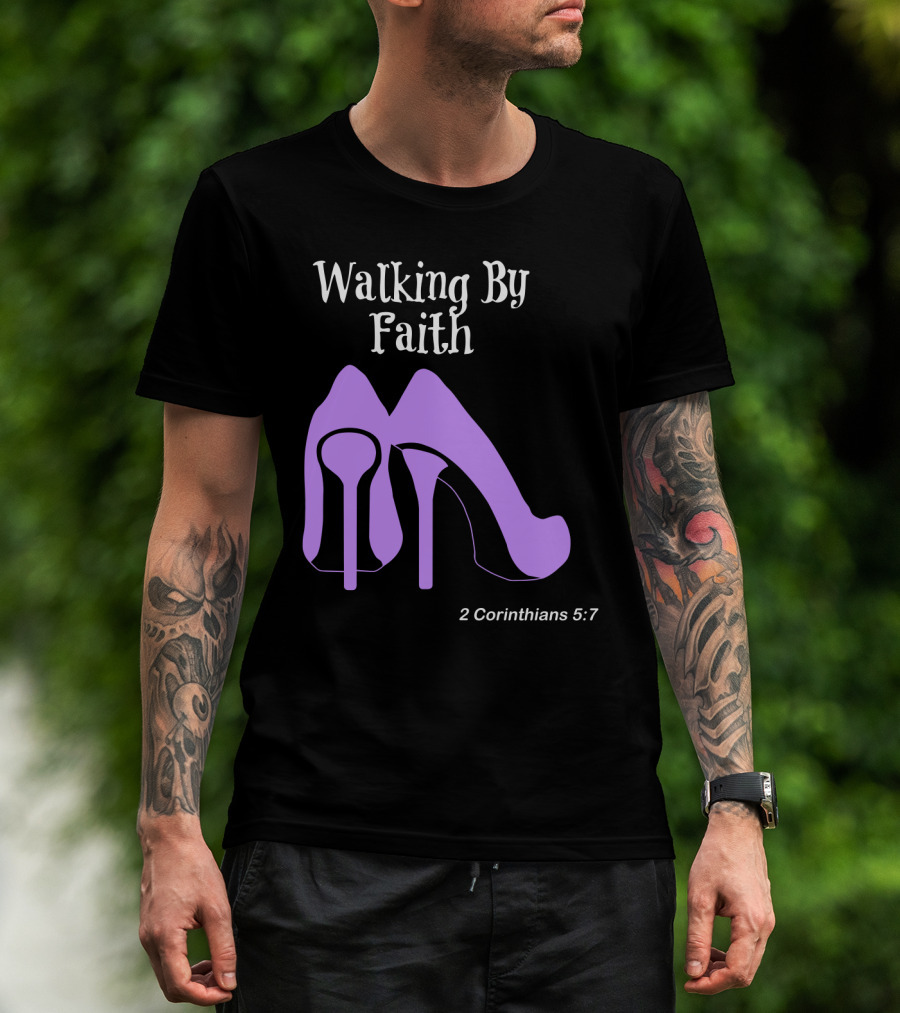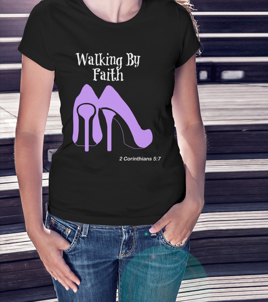 Walking By Faith 2 Corinthians 5:7 Purple High Heel T-Shirt