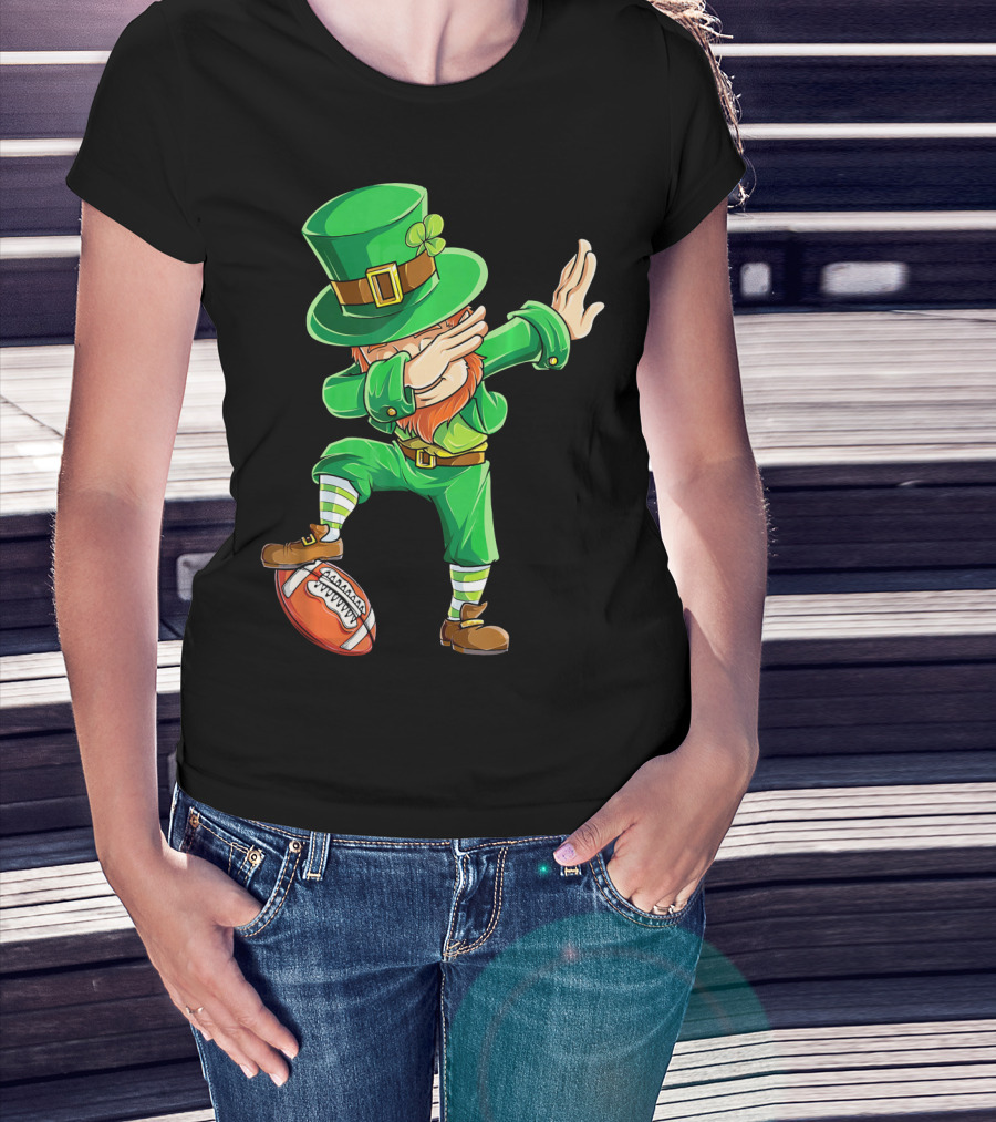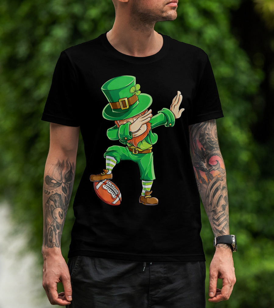 Leprechaun Dabbing On Football With Green Hat And Orange Beard T-Shirt