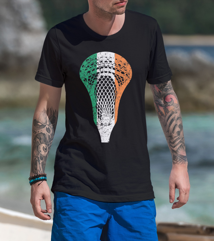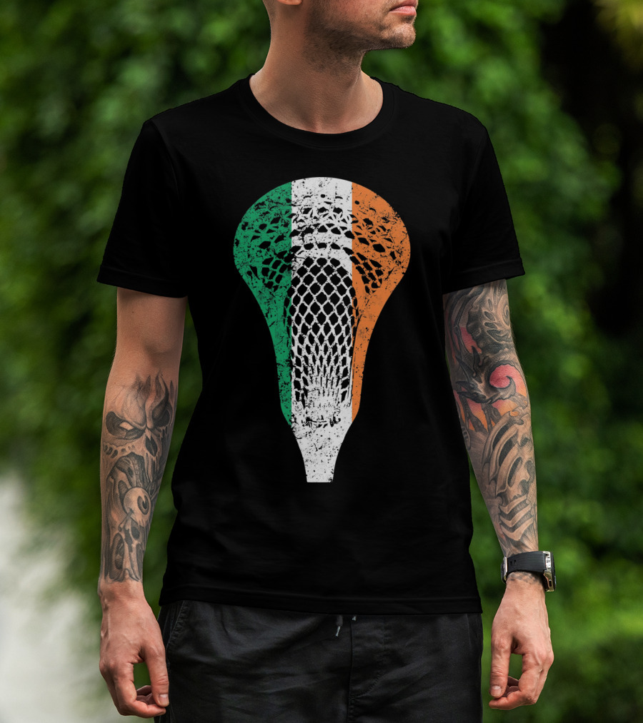 Irish Lacrosse Ireland Tricolor Lacrosse Stick Net T-Shirt