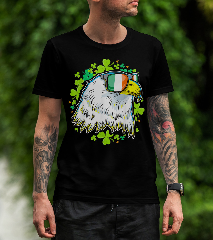 Mens Funny St Patricks Day Eagle Clover Sunglasses T-Shirt