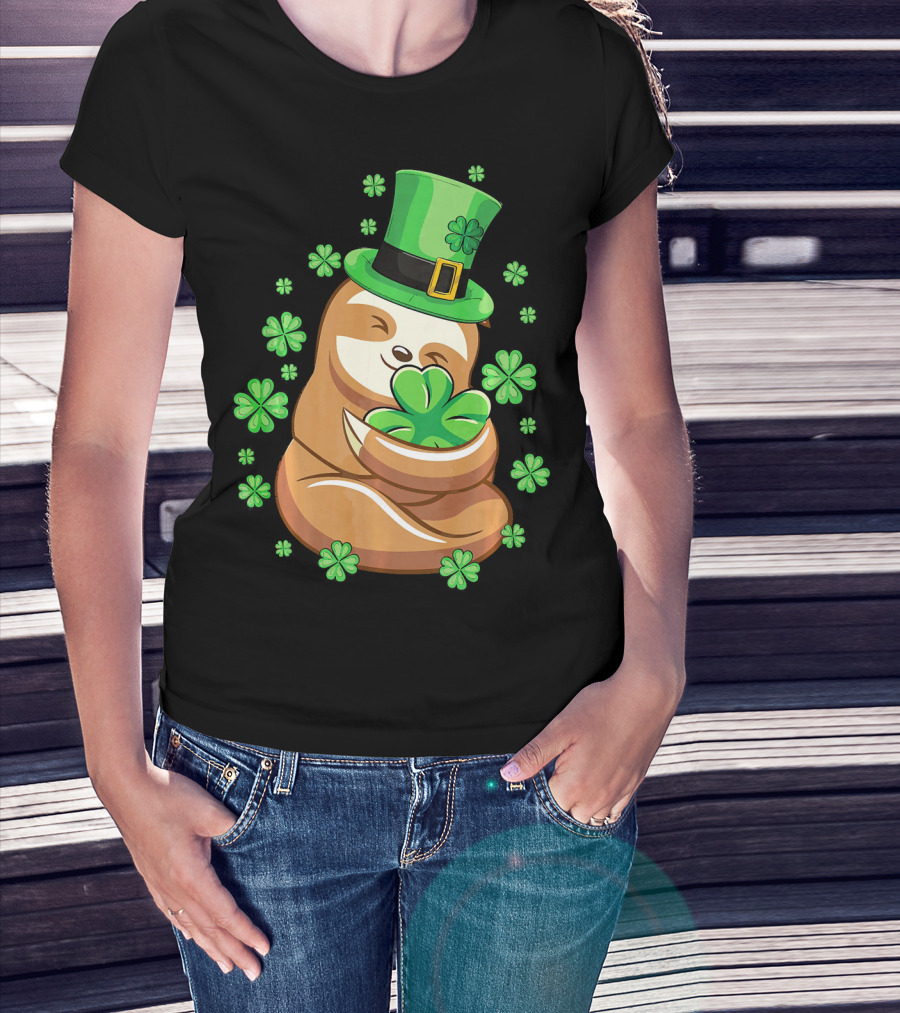 Lucky Sloth St Patricks Day Leprechaun With Shamrocks And Green Hat T-Shirt
