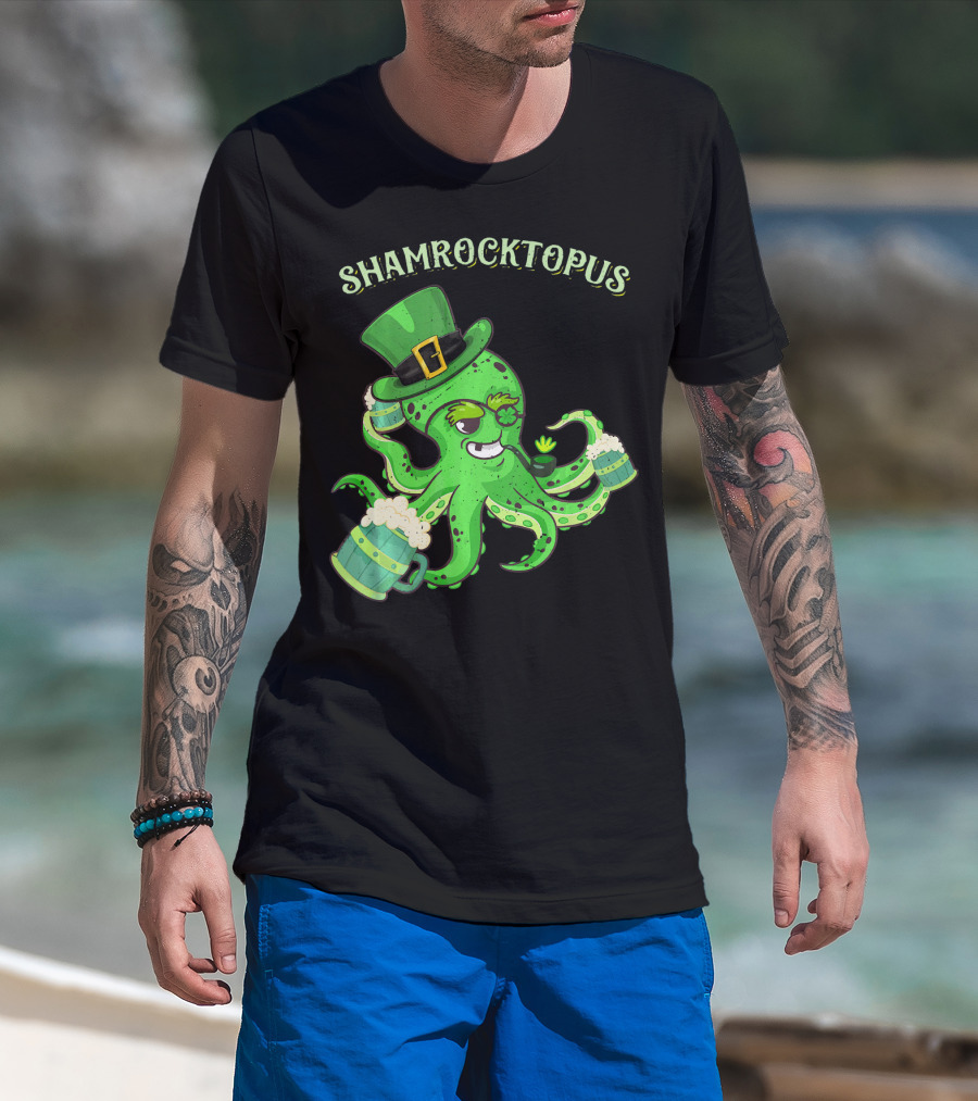 Shamrocktopus Octopus Leprechaun St. Pat Green Hat Beer Mugs T-Shirt