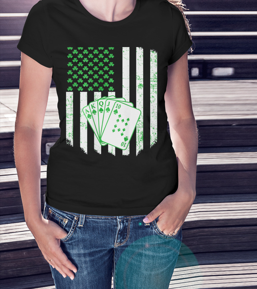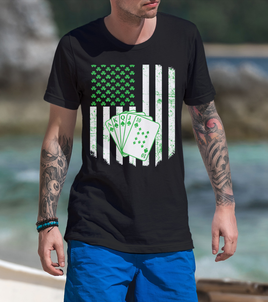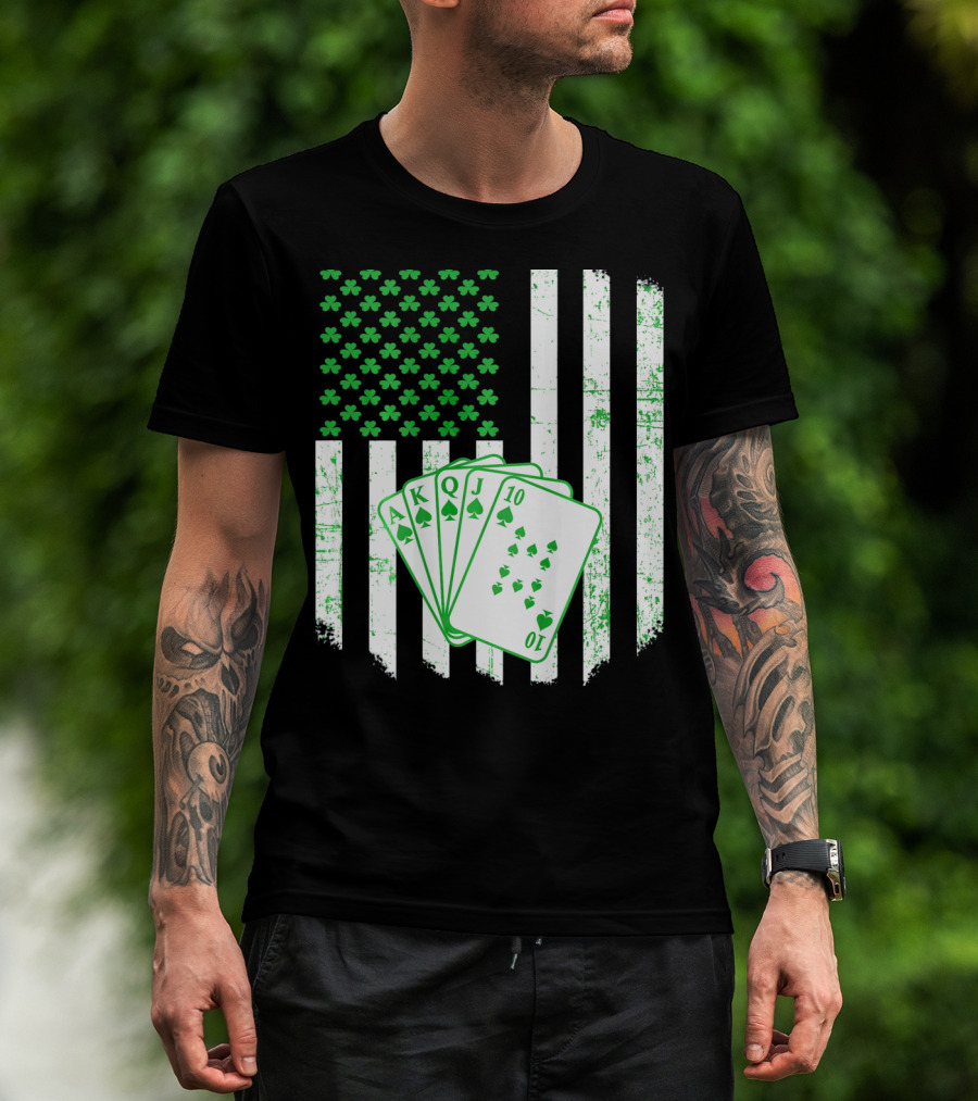 Irish Poker Flag With Shamrock And Playing Cards T-Shirt