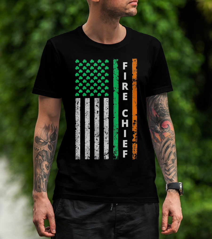 Fire Chief Irish Shamrock American Flag T-Shirt