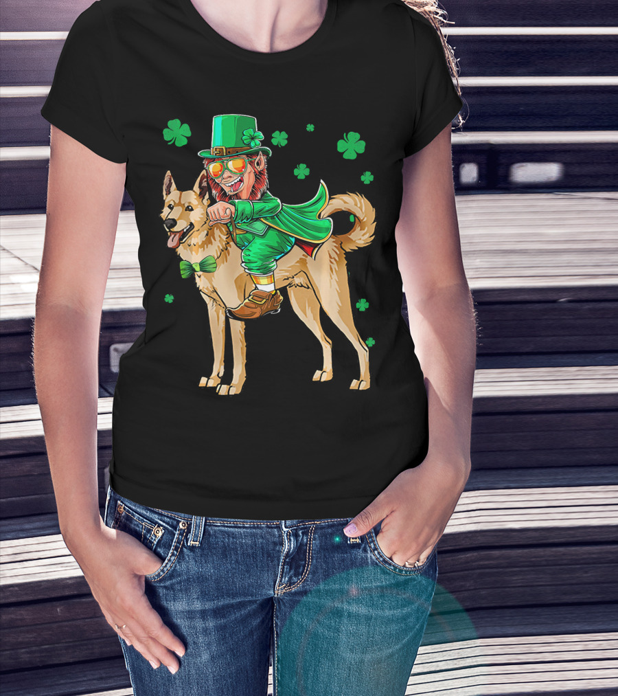 Leprechaun Riding Canaan Dog With Shamrock St. Patrick's Day T-Shirt