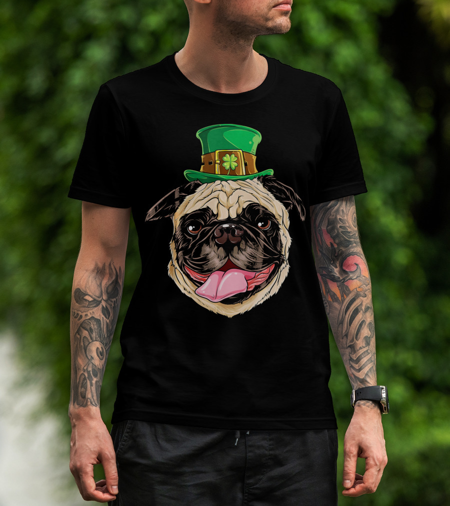 Irish Pug Leprechaun St Patricks Day Shamrock Hat T-Shirt