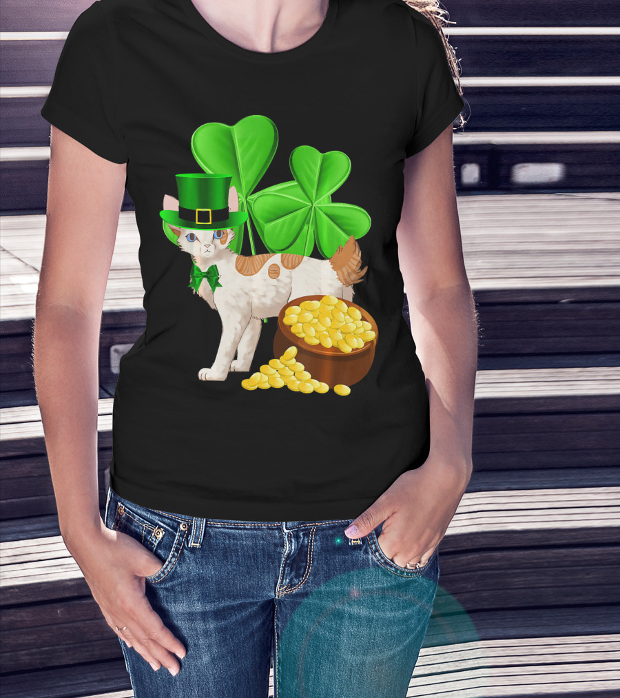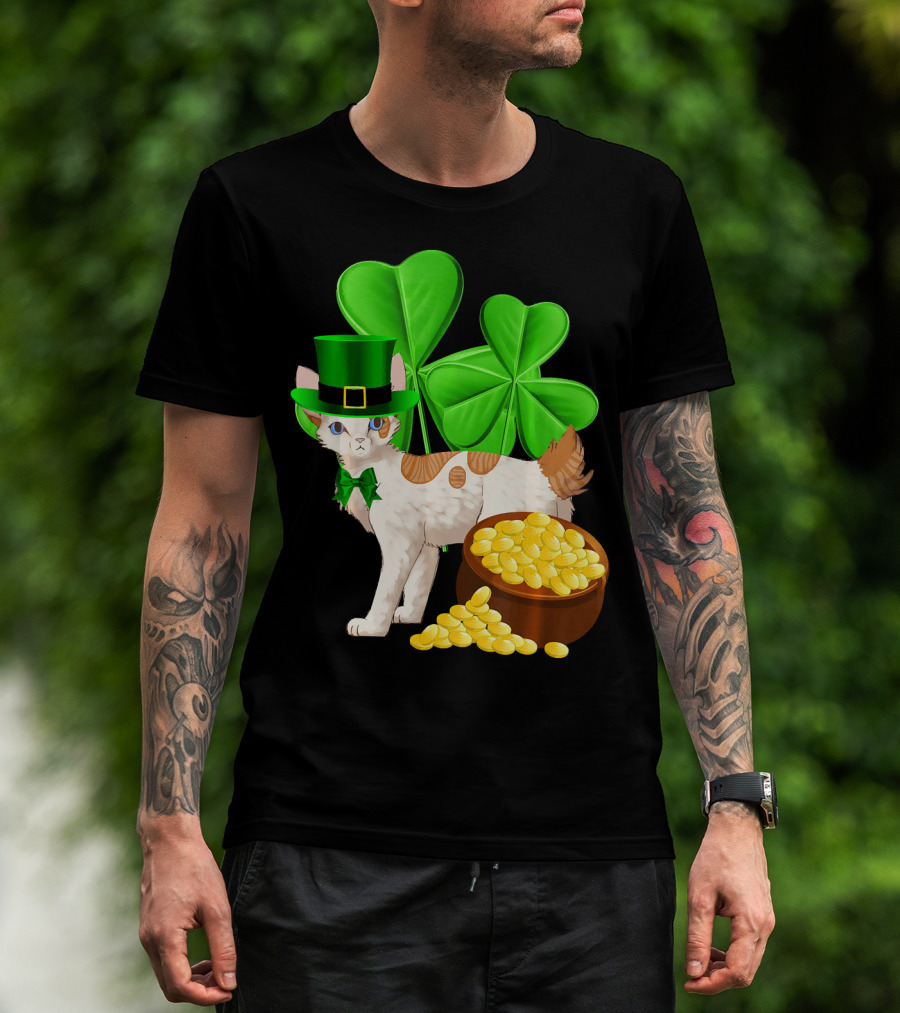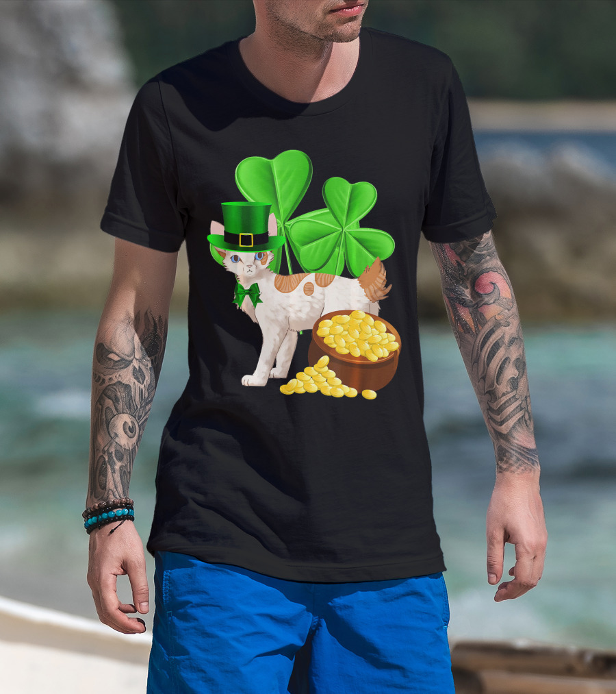 Japanese Bobtail Cat St Patricks Day Lucky Coins Shamrocks Leprechaun Hat T-Shirt