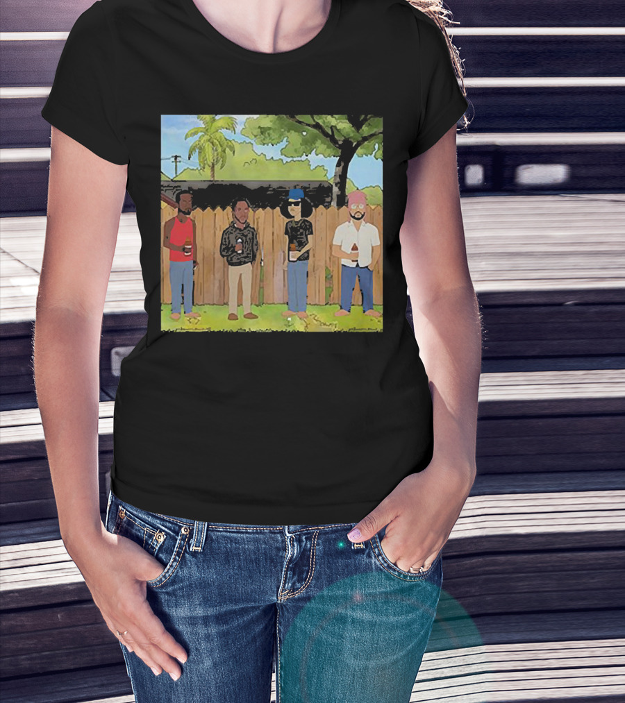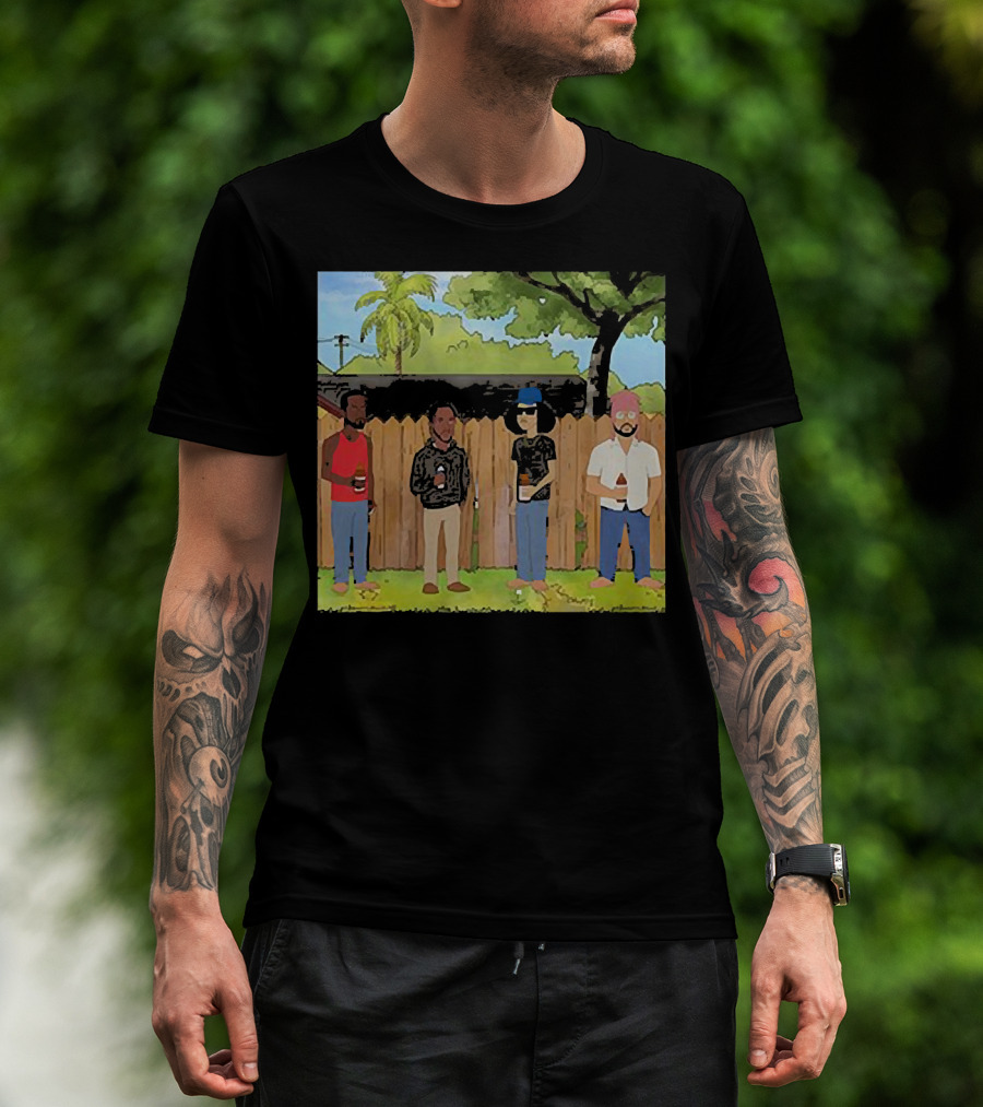 King Of The Hill Treatment With Four Men By Fence With Beverages And Trees T-Shirt