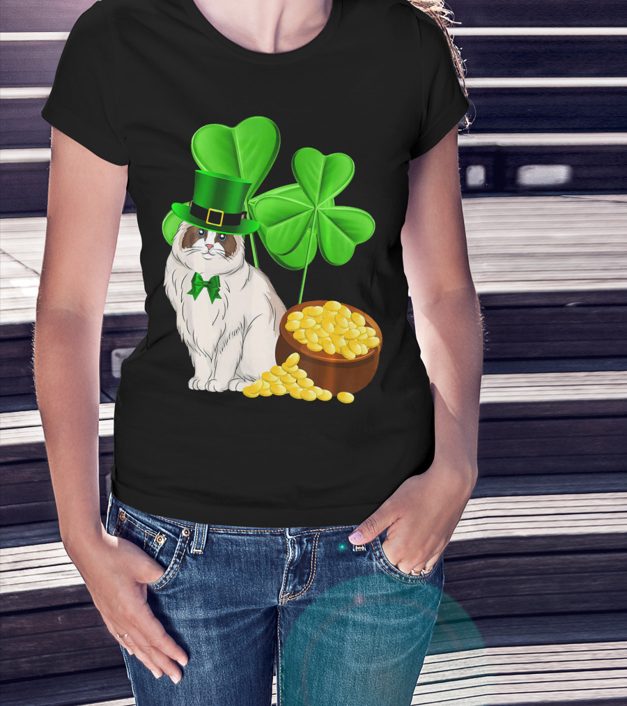 Himalayan Cat St Patricks Day Leprechaun Shamrocks And Gold Coins T-Shirt