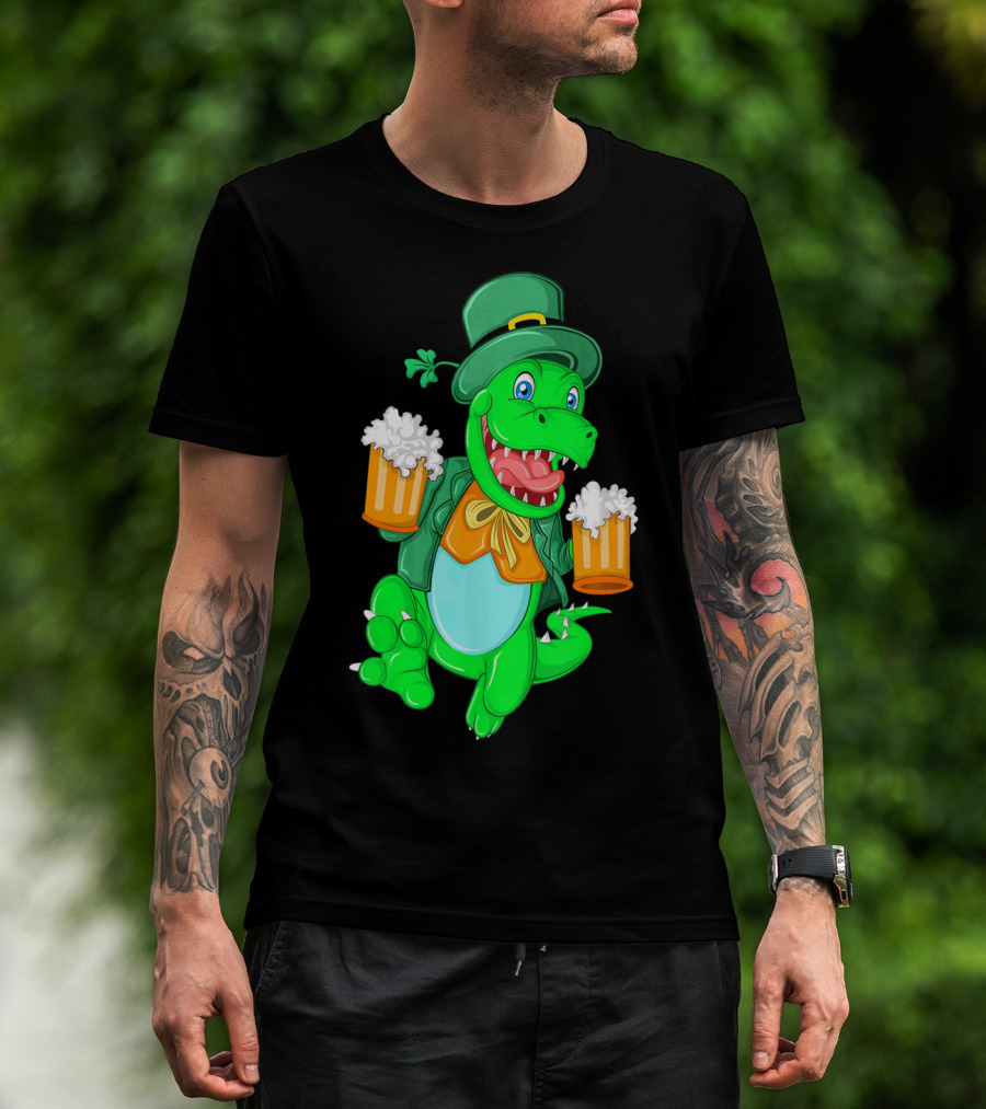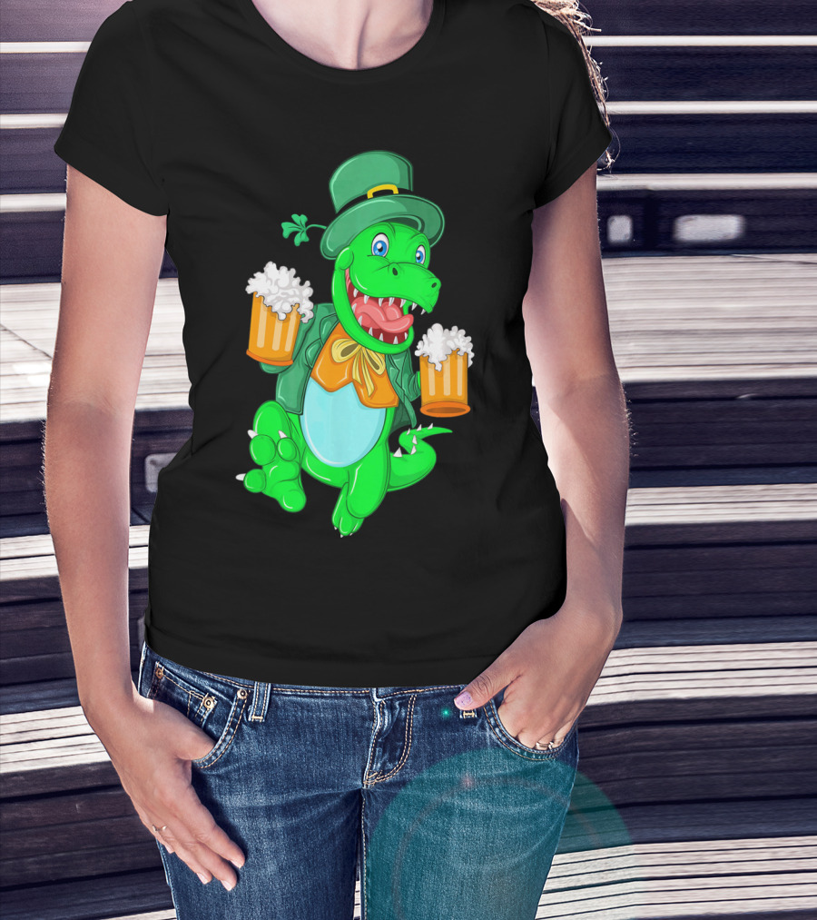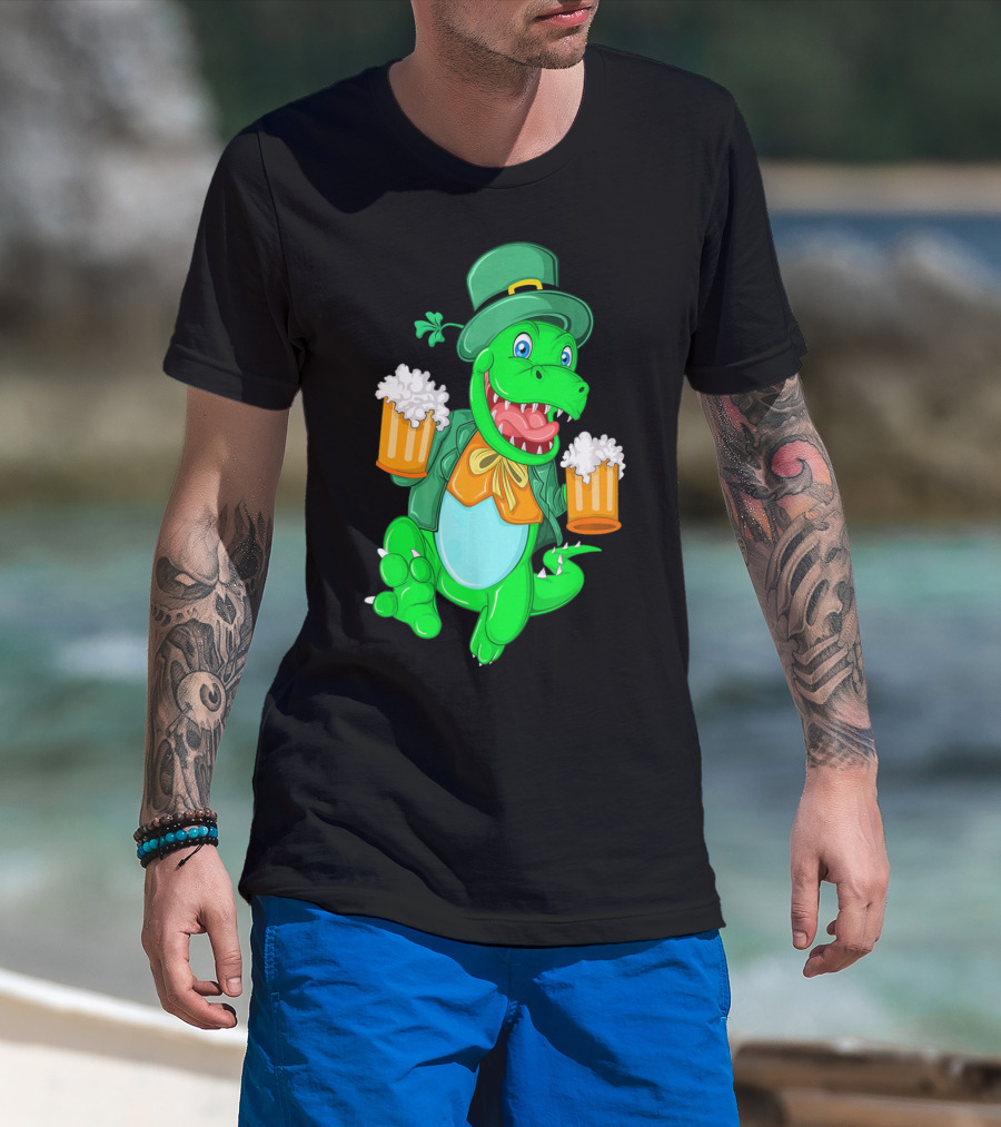 Irish Leprechaun Dinosaur Beer Party T-Shirt