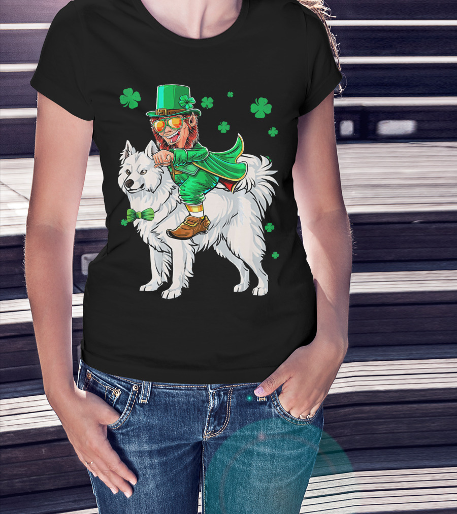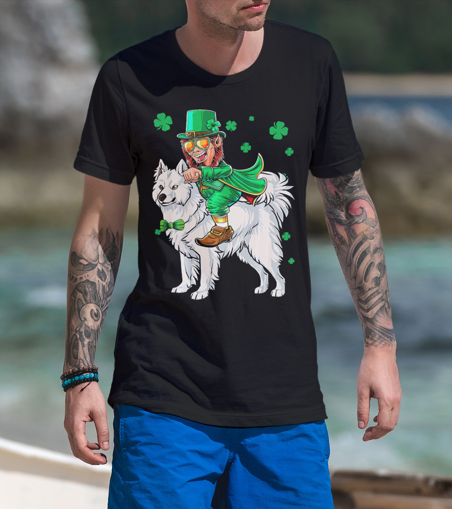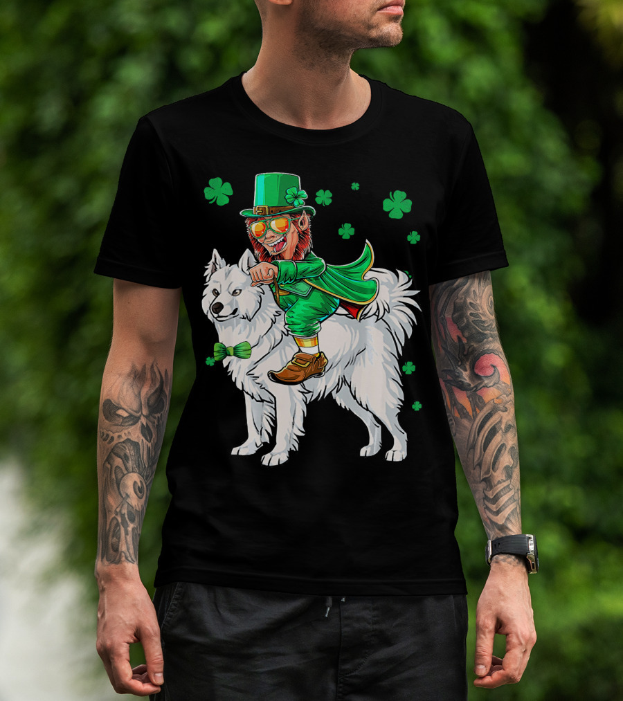 Leprechaun Riding Samoyed With Shamrocks St. Patrick's Day T-Shirt