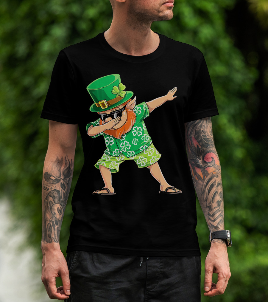 Dabbing Leprechaun In Hawaiian Clover T-Shirt
